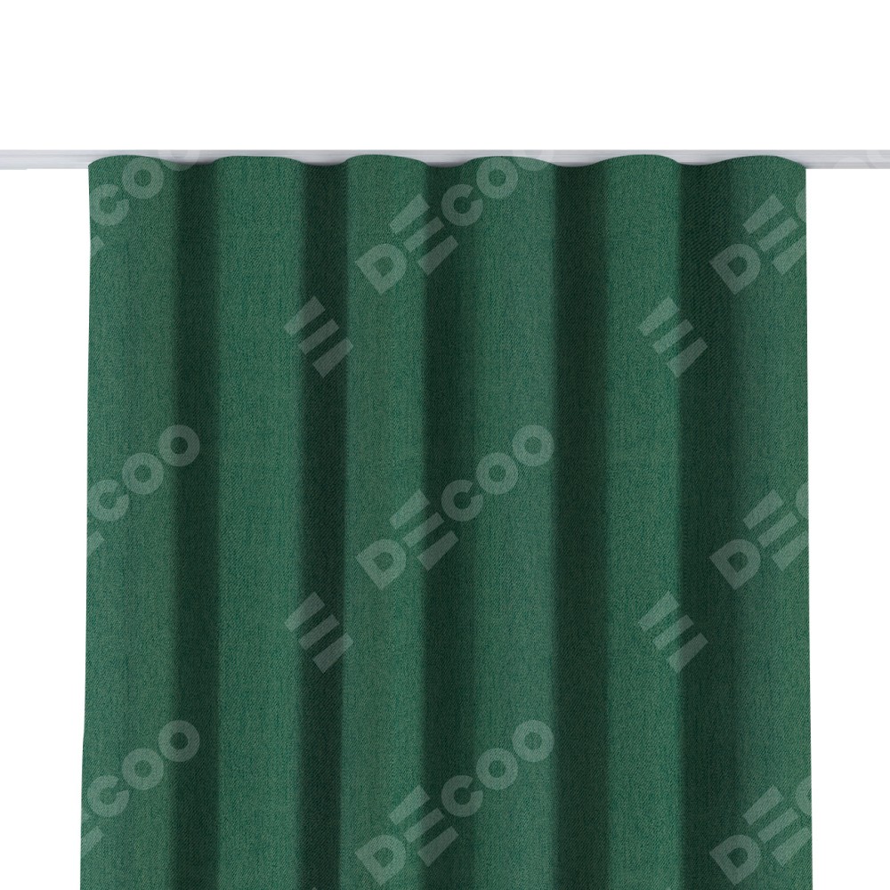 Комплект прямых штор, от производителя «Cortin», пошиты из ткани твид блэкаут зелёный, артикул ткани 21589. С изнаночной стороны в верхней части штор пристрачивается шторная лента с декоративными складками «Волна». Для создания элегантных складок прямые шторы шьются по стандарту с коэффициентом 1:2 (на 100 см. ширины проёма 200 см. ширины ткани).