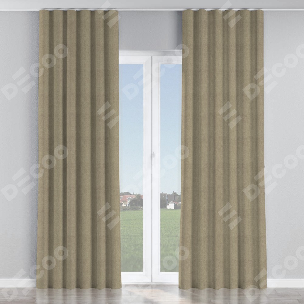 Комплект прямых штор, от производителя «Cortin», пошиты из ткани твид блэкаут кофе, артикул ткани 21575. С изнаночной стороны в верхней части штор пристрачивается шторная лента с декоративными складками «Волна». Для создания элегантных складок прямые шторы шьются по стандарту с коэффициентом 1:2 (на 100 см. ширины проёма 200 см. ширины ткани).