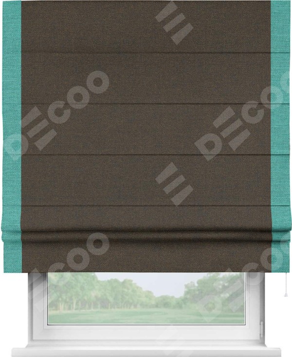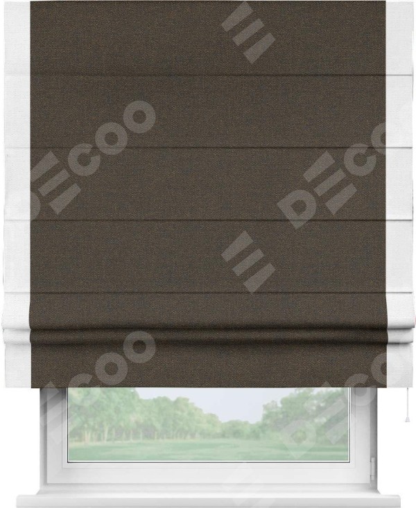 Римская штора «Кортин» с кантом Стрим Дуо, для проема, ткань лён темно-коричневый