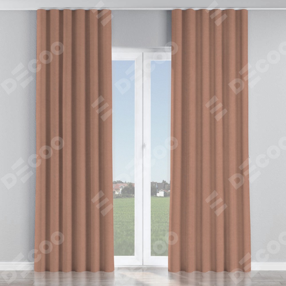 Комплект прямых штор, от производителя «Cortin», пошиты из ткани вельвет брусничный джем, артикул ткани 17750. С изнаночной стороны в верхней части штор пристрачивается шторная лента с декоративными складками «Волна». Для создания элегантных складок прямые шторы шьются по стандарту с коэффициентом 1:2 (на 100 см. ширины проёма 200 см. ширины ткани).