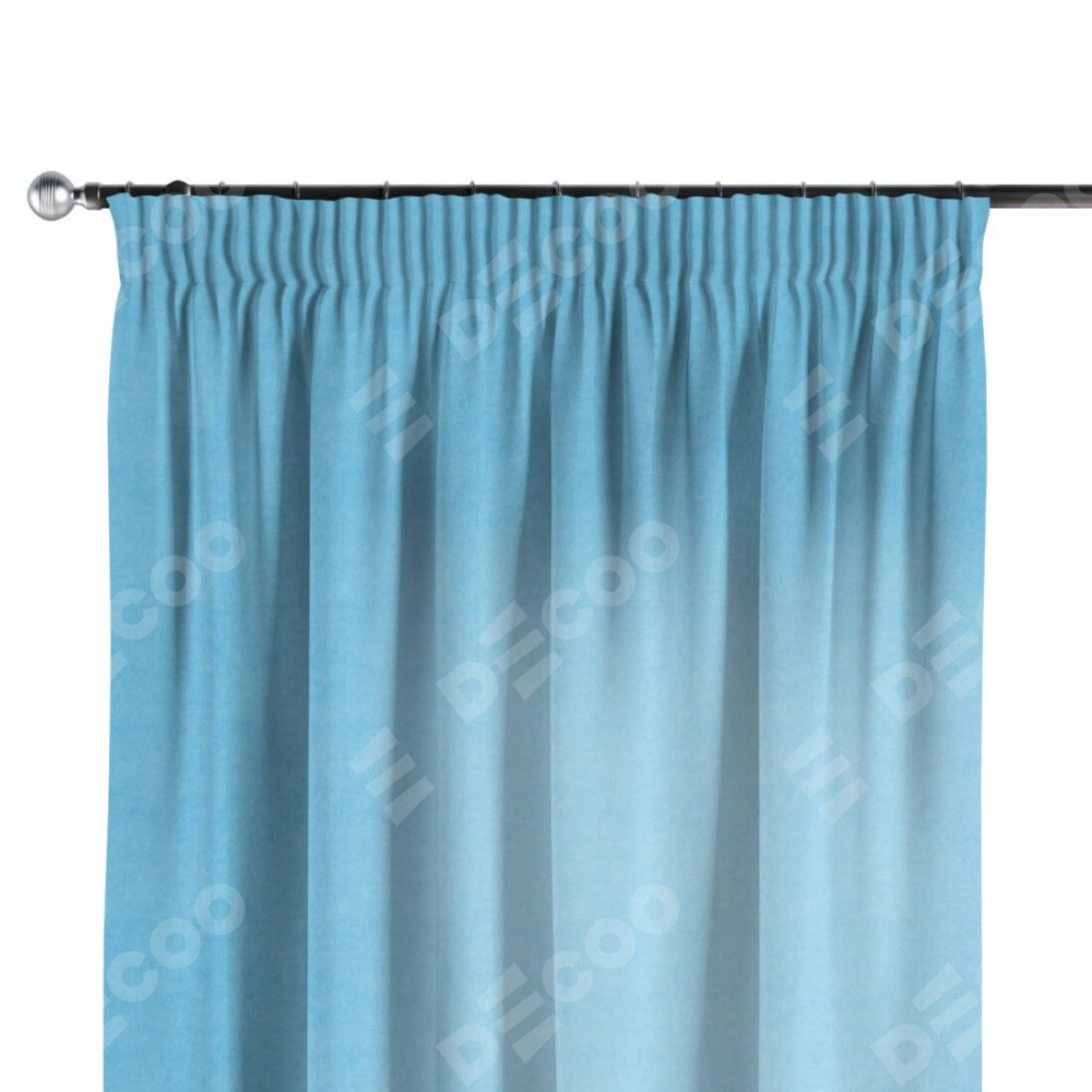 Комплект прямых штор, от производителя «Cortin», пошиты из ткани вельвет голубой, артикул ткани 85544. С изнаночной стороны в верхней части штор пристрачивается шторная лента с декоративными складками «Карандаш». Для создания элегантных складок прямые шторы шьются по стандарту с коэффициентом 1:2 (на 100 см. ширины проёма 200 см. ширины ткани).