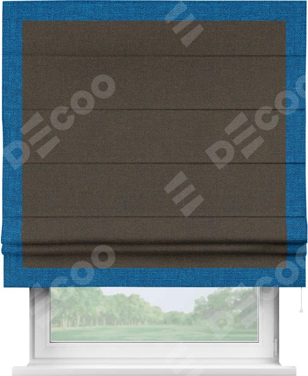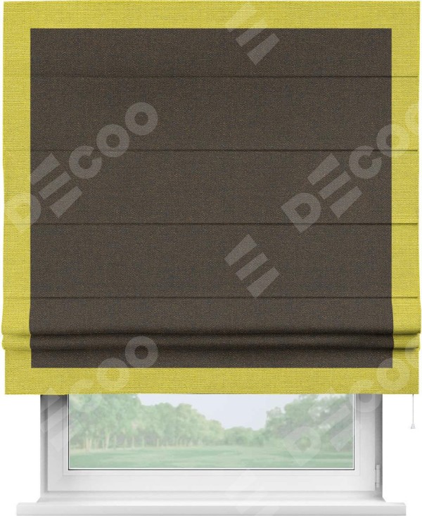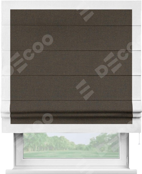 Римская штора «Кортин» с кантом Чесс, для проема, ткань лён темно-коричневый
