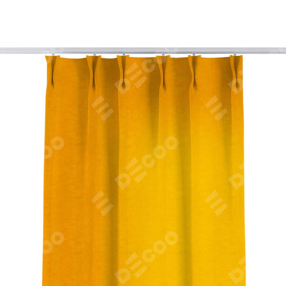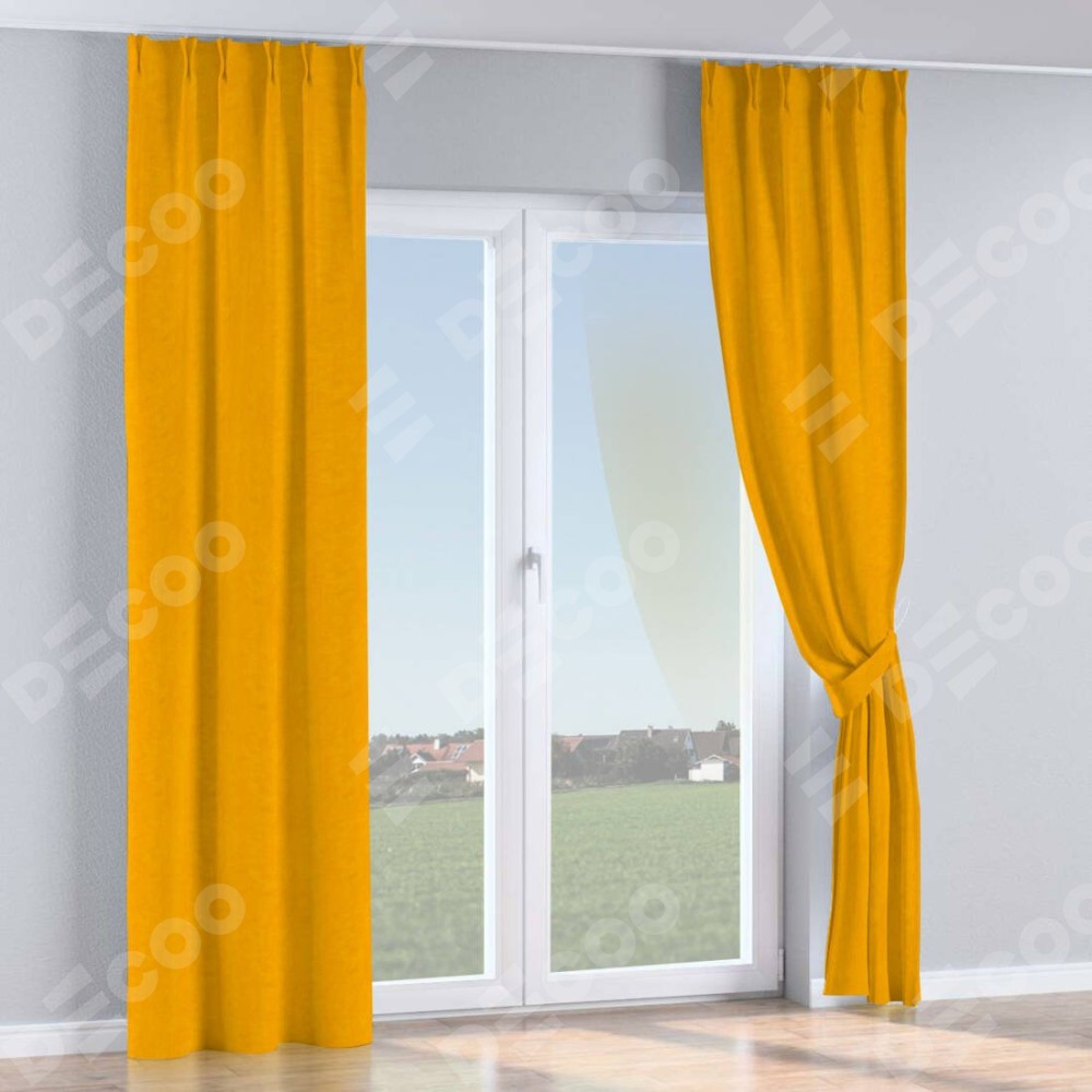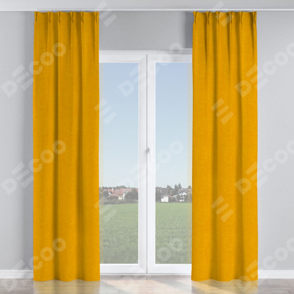 Комплект прямых штор, от производителя «Cortin», пошиты из ткани вельвет желтый, артикул ткани 85547. С изнаночной стороны в верхней части штор пристрачивается шторная лента с декоративными складками «Кустик». Для создания элегантных складок прямые шторы шьются по стандарту с коэффициентом 1:2 (на 100 см. ширины проёма 200 см. ширины ткани).