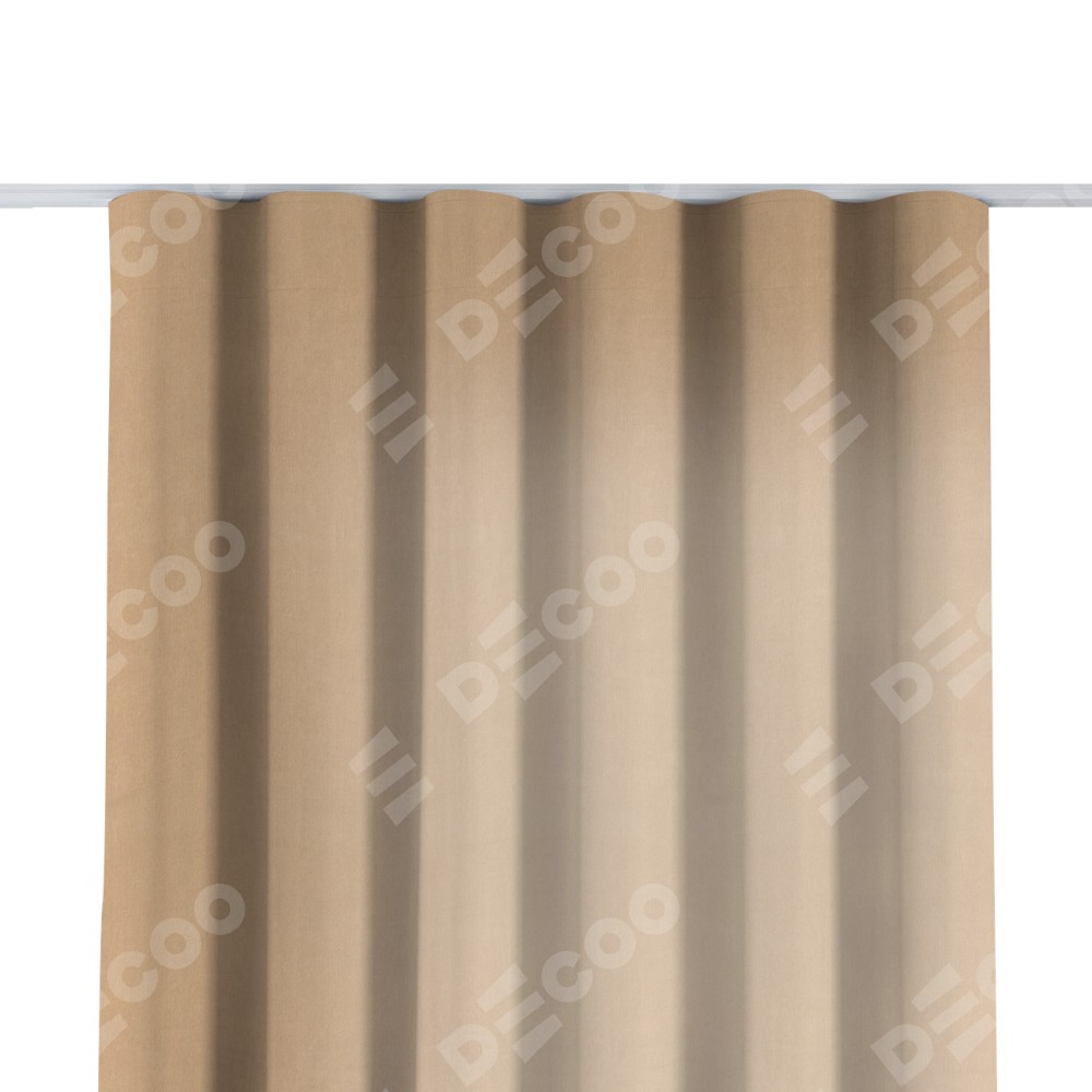 Комплект прямых штор, от производителя «Cortin», пошиты из ткани вельвет песочный, артикул ткани 17740. С изнаночной стороны в верхней части штор пристрачивается шторная лента с декоративными складками «Волна». Для создания элегантных складок прямые шторы шьются по стандарту с коэффициентом 1:2 (на 100 см. ширины проёма 200 см. ширины ткани).