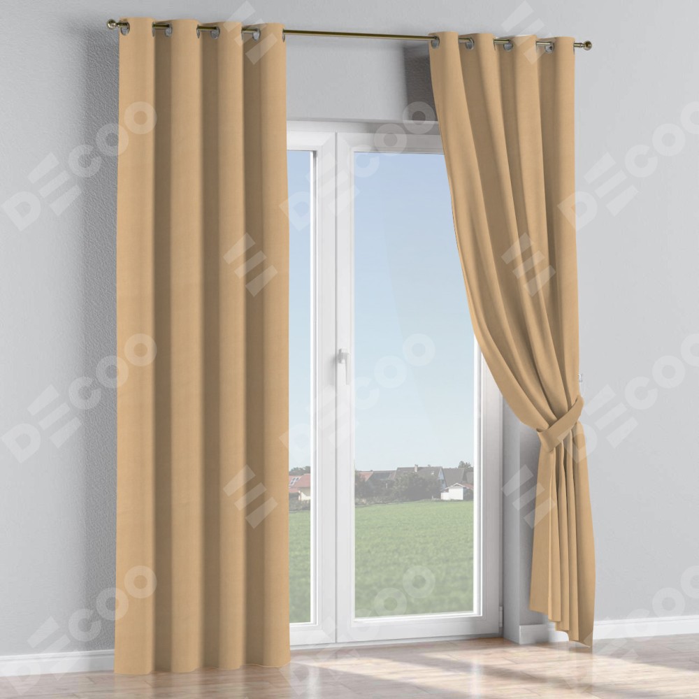 Комплект прямых штор, от производителя «Cortin», пошиты из ткани вельвет песочный, артикул ткани 17740. Данная модель пошита на люверсах, комплектуется на выбор круглым карнизом и подходит для монтажа на стену или потолок. Прямые шторы на люверсах шьются по стандарту с коэффициентом 1/2 (на 100 см. ширины проёма 200 см. ширины ткани), отличительным преимуществом данной модели является простой способ монтажа. Достаточно повесить ее на трубу и штора готова!