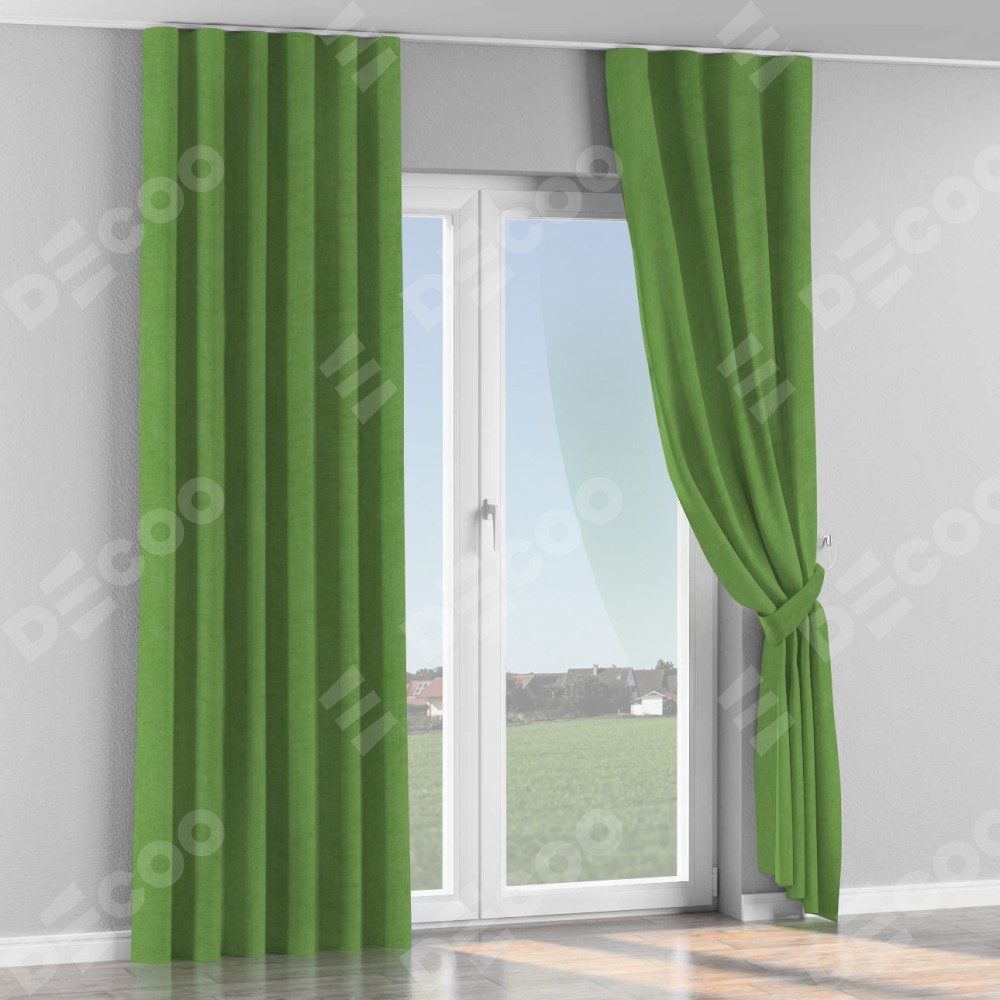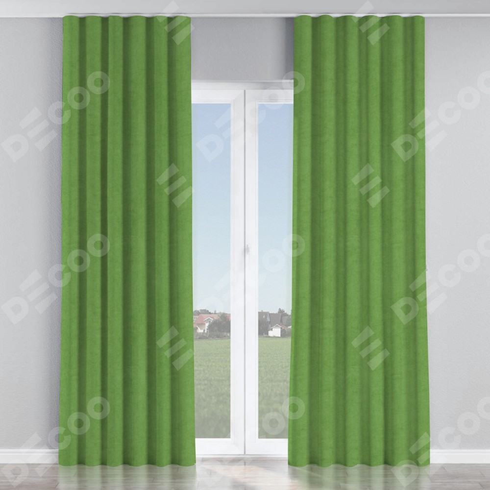 Комплект прямых штор, от производителя «Cortin», пошиты из ткани вельвет салатовый, артикул ткани 87072. С изнаночной стороны в верхней части штор пристрачивается шторная лента с декоративными складками «Волна». Для создания элегантных складок прямые шторы шьются по стандарту с коэффициентом 1:2 (на 100 см. ширины проёма 200 см. ширины ткани).