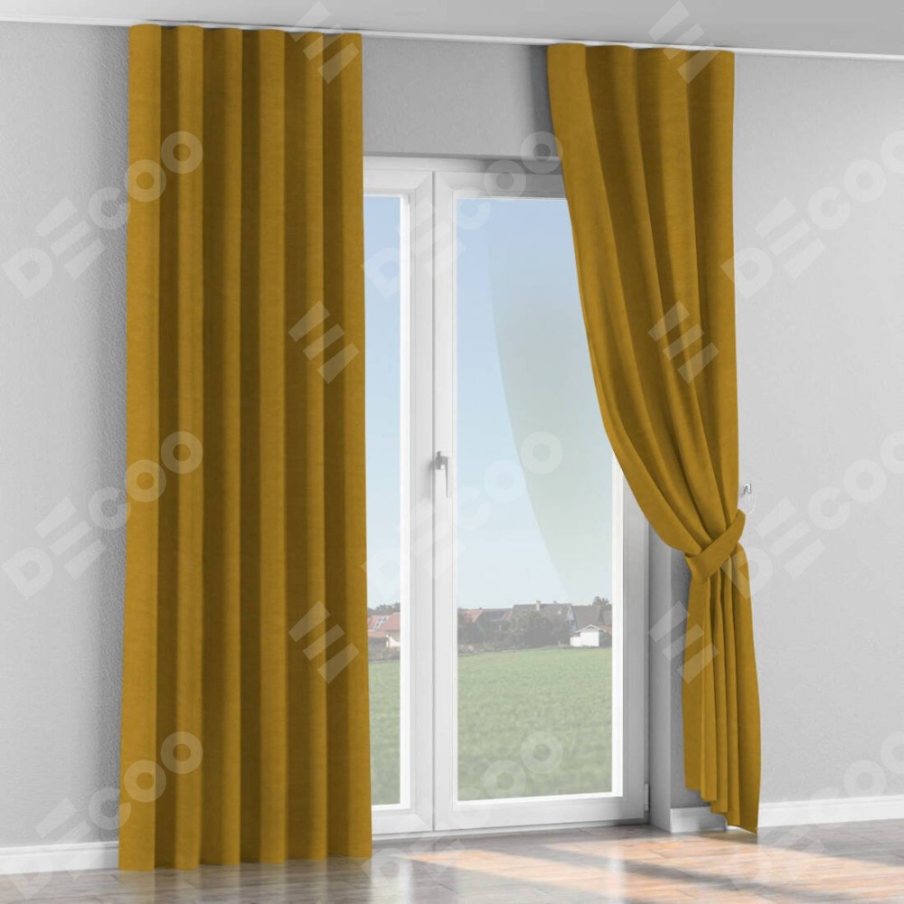 Комплект прямых штор, от производителя «Cortin», пошиты из ткани вельвет светло-коричневый, артикул ткани 4973. С изнаночной стороны в верхней части штор пристрачивается шторная лента с декоративными складками «Волна». Для создания элегантных складок прямые шторы шьются по стандарту с коэффициентом 1:2 (на 100 см. ширины проёма 200 см. ширины ткани).