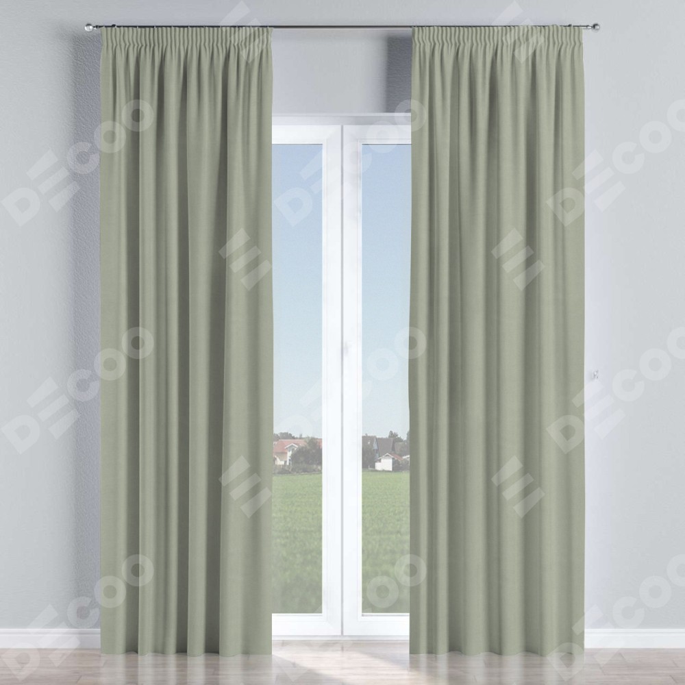 Комплект прямых штор, от производителя «Cortin», пошиты из ткани вельвет светло-серый, артикул ткани 30981. С изнаночной стороны в верхней части штор пристрачивается шторная лента с декоративными складками «Карандаш». Для создания элегантных складок прямые шторы шьются по стандарту с коэффициентом 1:2 (на 100 см. ширины проёма 200 см. ширины ткани).