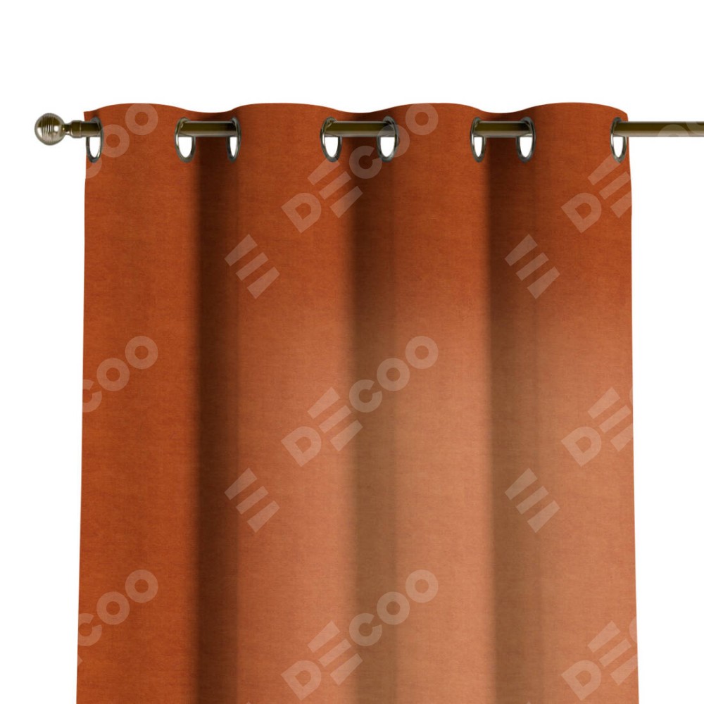 Комплект прямых штор, от производителя «Cortin», пошиты из ткани вельвет терракотовый, артикул ткани 85548. Данная модель пошита на люверсах, комплектуется на выбор круглым карнизом и подходит для монтажа на стену или потолок. Прямые шторы на люверсах шьются по стандарту с коэффициентом 1/2 (на 100 см. ширины проёма 200 см. ширины ткани), отличительным преимуществом данной модели является простой способ монтажа. Достаточно повесить ее на трубу и штора готова!