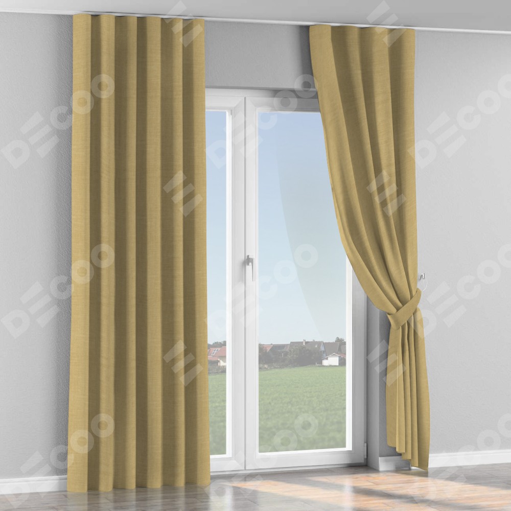 Комплект прямых штор, от производителя «Cortin», пошиты из ткани лён бежевый, артикул ткани 7442. С изнаночной стороны в верхней части штор пристрачивается шторная лента с декоративными складками «Волна». Для создания элегантных складок прямые шторы шьются по стандарту с коэффициентом 1:2 (на 100 см. ширины проёма 200 см. ширины ткани).