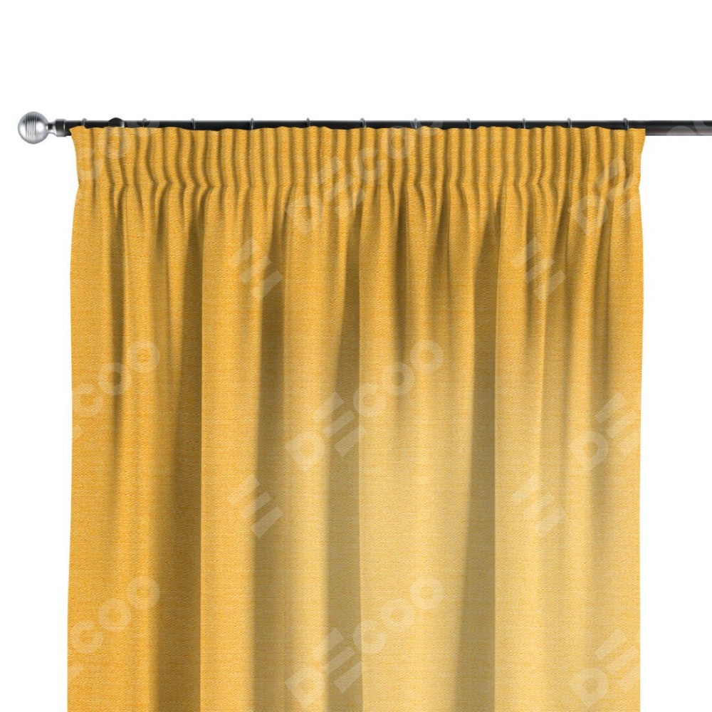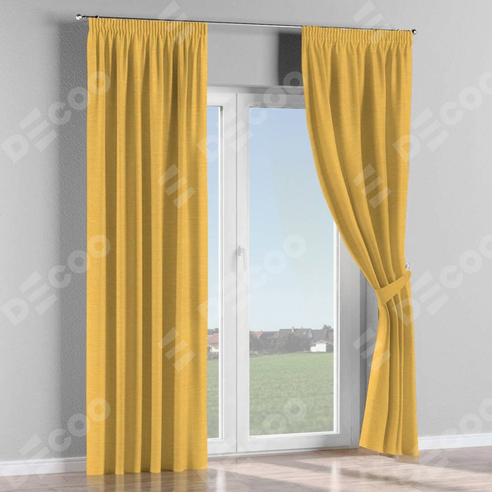 Комплект прямых штор, от производителя «Cortin», пошиты из ткани лён желтый, артикул ткани 63738. С изнаночной стороны в верхней части штор пристрачивается шторная лента с декоративными складками «Карандаш». Для создания элегантных складок прямые шторы шьются по стандарту с коэффициентом 1:2 (на 100 см. ширины проёма 200 см. ширины ткани).