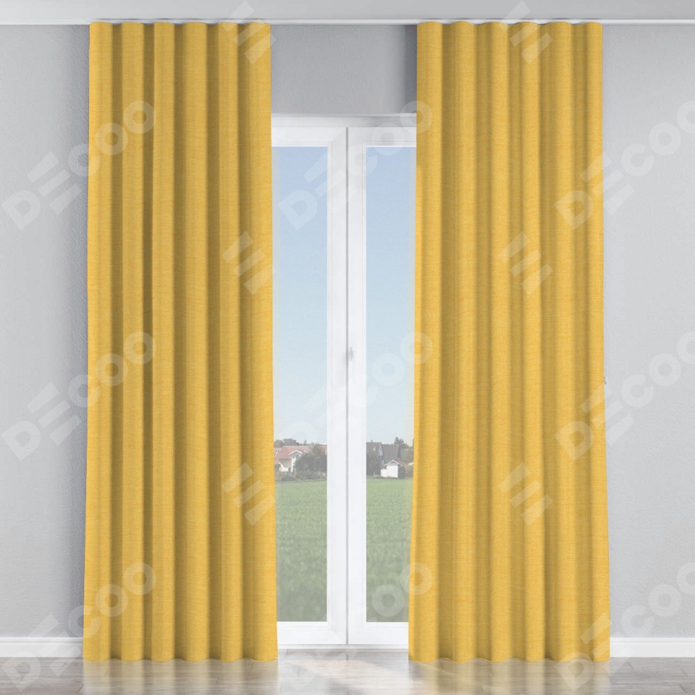 Комплект прямых штор, от производителя «Cortin», пошиты из ткани лён желтый, артикул ткани 63738. С изнаночной стороны в верхней части штор пристрачивается шторная лента с декоративными складками «Волна». Для создания элегантных складок прямые шторы шьются по стандарту с коэффициентом 1:2 (на 100 см. ширины проёма 200 см. ширины ткани).
