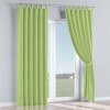 Комплект прямых штор, от производителя «Cortin», пошиты из ткани лён зелёный, артикул ткани 85906. Данная модель пошита на петлях, комплектуется на выбор круглым карнизом и подходит для монтажа на стену или потолок. Прямые шторы на петлях шьются по стандарту с коэффициентом 1/2 (на 100 см. ширины проёма 200 см. ширины ткани), отличительным преимуществом данной модели является простой способ монтажа. Достаточно повесить ее на трубу и штора готова!