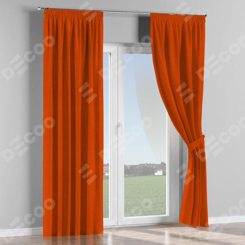 Комплект прямых штор, от производителя «Cortin», пошиты из ткани лён терракотовый, артикул ткани 53440. С изнаночной стороны в верхней части штор пристрачивается шторная лента с декоративными складками «Карандаш». Для создания элегантных складок прямые шторы шьются по стандарту с коэффициентом 1:2 (на 100 см. ширины проёма 200 см. ширины ткани).