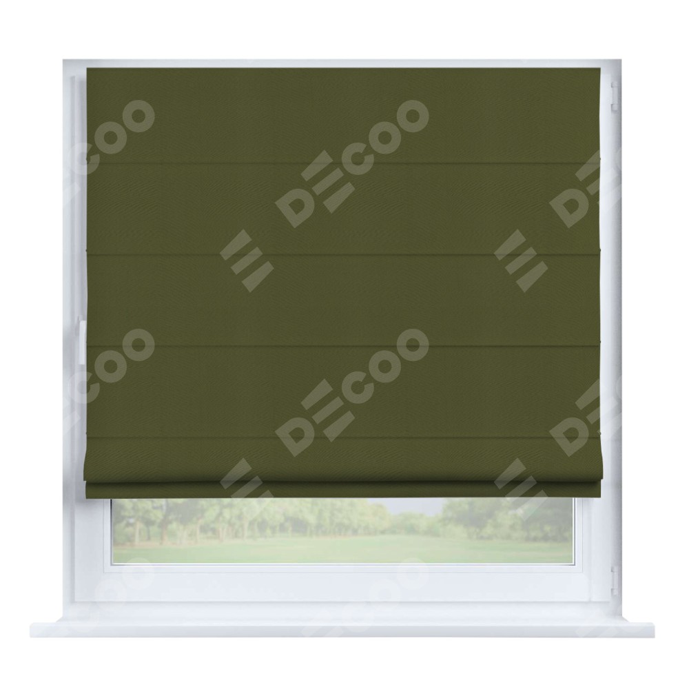 Римская штора производителя «Cortin», устанавливается на створку окна, пошита из ткани блэкаут однотонный зелёный, артикул 81859. Штора шьётся по индивидуальным размерам, для данного типа римской шторы возможная ширина от 35 до 150 см., высота до 250 см.