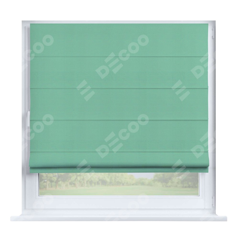 Римская штора производителя «Cortin», устанавливается на створку окна, пошита из ткани pipa блэкаут бирюза, артикул 81852. Штора шьётся по индивидуальным размерам, для данного типа римской шторы возможная ширина от 35 до 150 см., высота до 250 см.