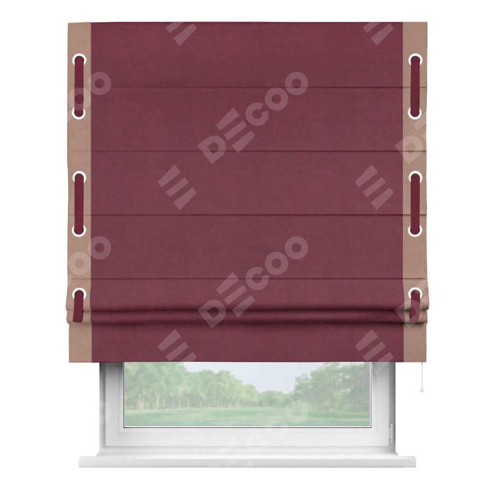 Римская штора «Кортин» с кантом Стрим Дуо (люверсы с пояском), для проема, ткань вельвет бордовый
