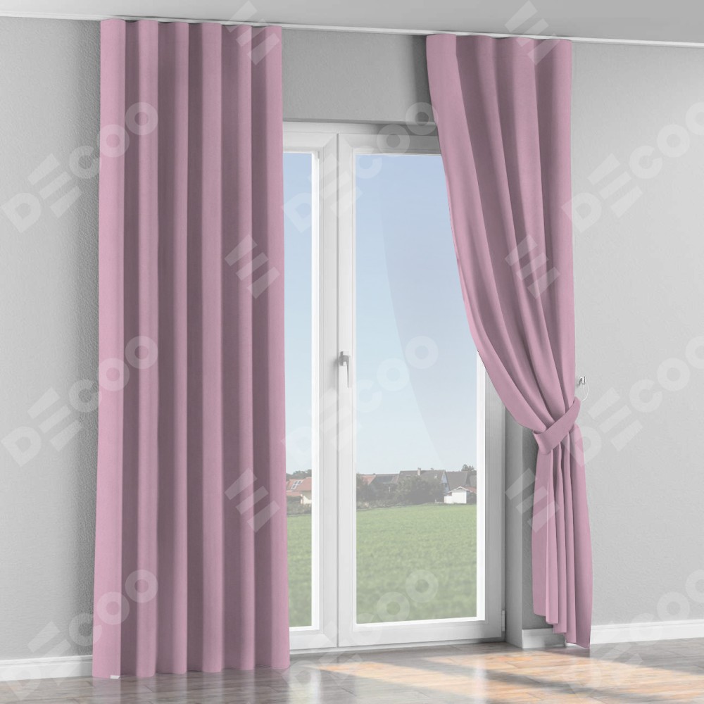 Комплект прямых штор, от производителя «Cortin», пошиты из ткани pipa блэкаут розовый, артикул ткани 12091. С изнаночной стороны в верхней части штор пристрачивается шторная лента с декоративными складками «Волна». Для создания элегантных складок прямые шторы шьются по стандарту с коэффициентом 1:2 (на 100 см. ширины проёма 200 см. ширины ткани).