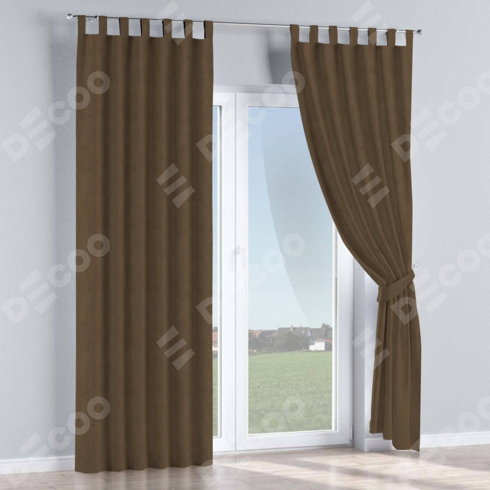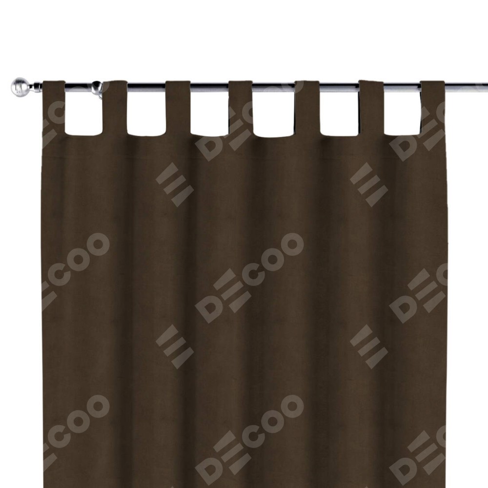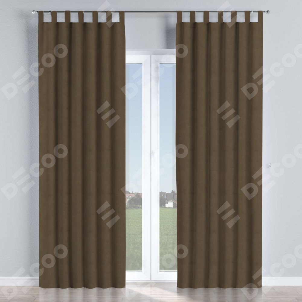 Комплект прямых штор, от производителя «Cortin», пошиты из ткани бархат тёмно-коричневый, артикул ткани 5017. Данная модель пошита на петлях, комплектуется на выбор круглым карнизом и подходит для монтажа на стену или потолок. Прямые шторы на петлях шьются по стандарту с коэффициентом 1/2 (на 100 см. ширины проёма 200 см. ширины ткани), отличительным преимуществом данной модели является простой способ монтажа. Достаточно повесить ее на трубу и штора готова!