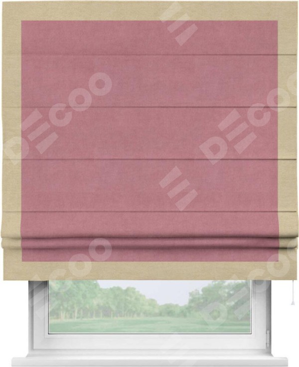 Римская штора «Кортин» с кантом Чесс, для проема, ткань вельвет брусника