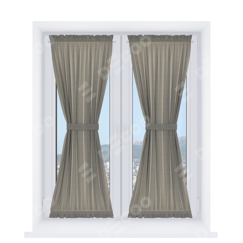 Штора «Песочные часы» производителя «Cortin», используется для створок окон и дверей, пошита из ткани лён димаут серо-зелёный, артикул ткани 00003.