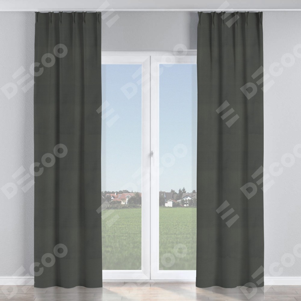 Комплект прямых штор, от производителя «Cortin», пошиты из ткани бархат серый, артикул ткани 5024. С изнаночной стороны в верхней части штор пристрачивается шторная лента с декоративными складками «Кустик». Для создания элегантных складок прямые шторы шьются по стандарту с коэффициентом 1:2 (на 100 см. ширины проёма 200 см. ширины ткани).