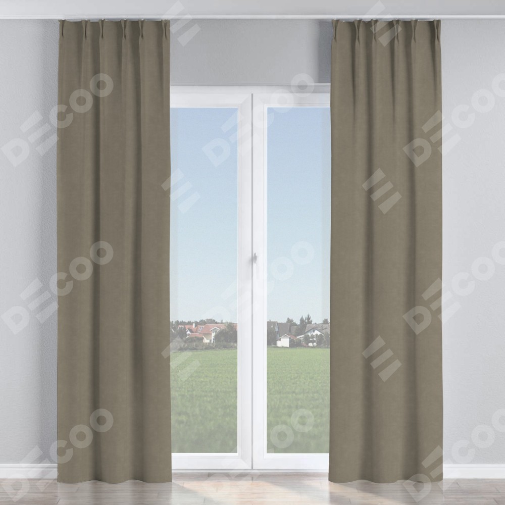 Комплект прямых штор, от производителя «Cortin», пошиты из ткани бархат ария, артикул ткани 31. С изнаночной стороны в верхней части штор пристрачивается шторная лента с декоративными складками «Кустик». Для создания элегантных складок прямые шторы шьются по стандарту с коэффициентом 1:2 (на 100 см. ширины проёма 200 см. ширины ткани).