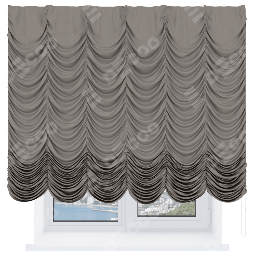 Французская штора производителя «Cortin», используется для проёма, пошита из ткани вельвет кофейный, артикул ткани 30980. Имеет универсальный механизм и подходит для монтажа: на потолок и на стену.