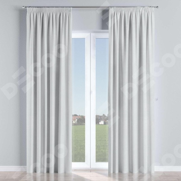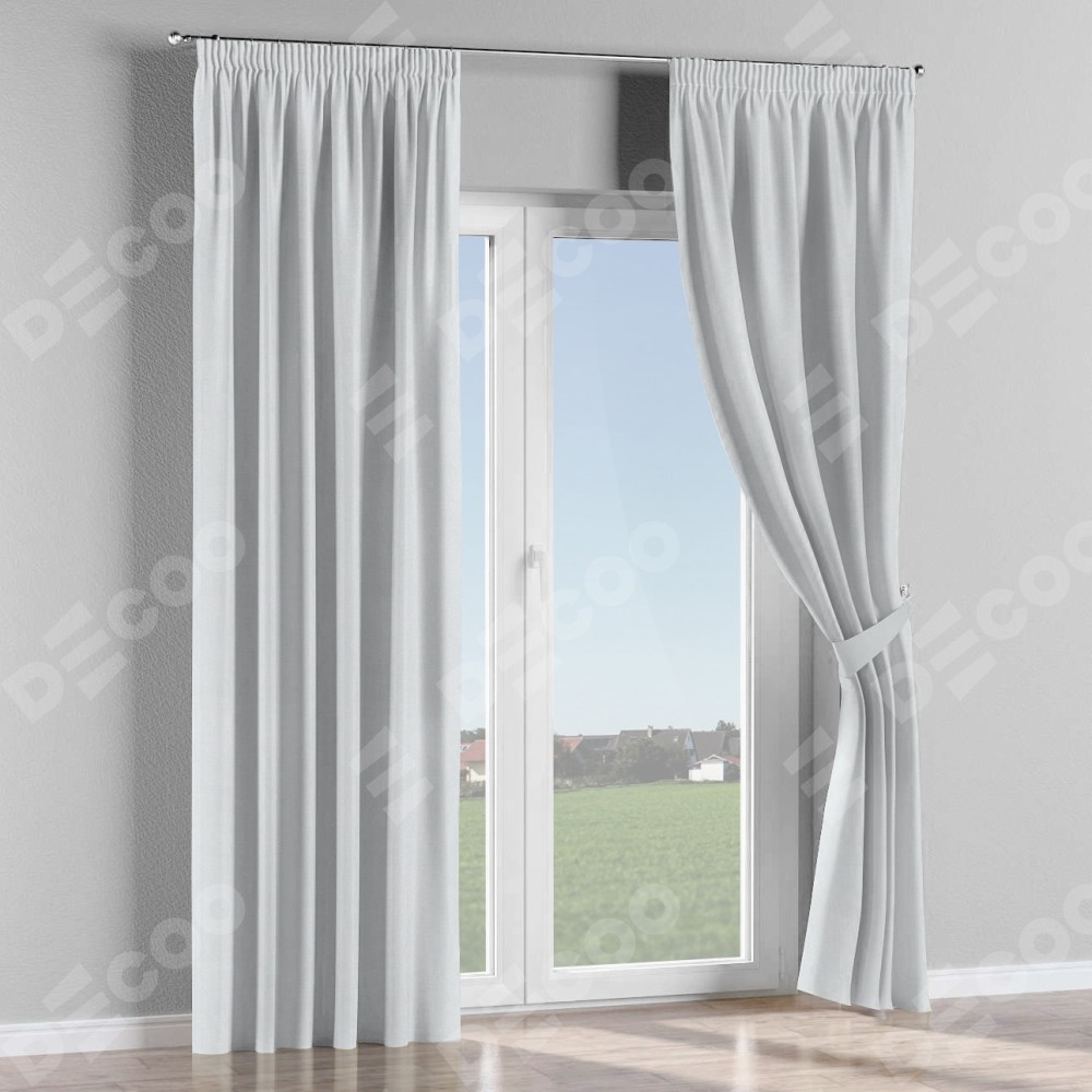 Комплект прямых штор, от производителя «Cortin», пошиты из ткани блэкаут однотонный дымчато-белый, артикул ткани 101. С изнаночной стороны в верхней части штор пристрачивается шторная лента с декоративными складками «Карандаш». Для создания элегантных складок прямые шторы шьются по стандарту с коэффициентом 1:2 (на 100 см. ширины проёма 200 см. ширины ткани).
