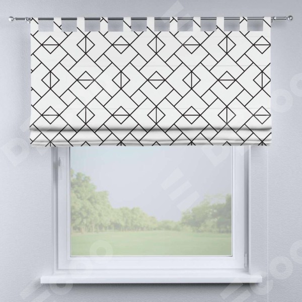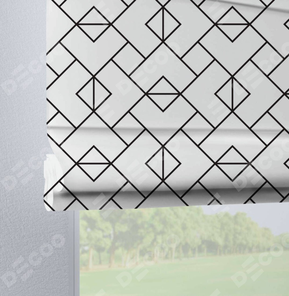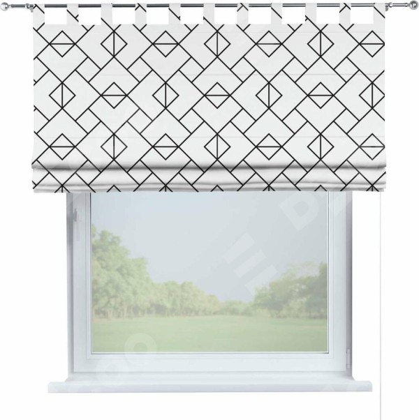 Римская штора производителя «Cortin», используется для проёма, пошита из ткани блэкаут с нанесением сублимационной печати «Геометрический орнамент». Данная модель пошита на петлях, комплектуется на выбор круглым карнизом и подходит для монтажа на стену. Римская штора на петлях имеет простую систему регулировки высоты, отличительным преимуществом данной модели является простой способ монтажа. Достаточно повесить ее на трубу и штора готова!