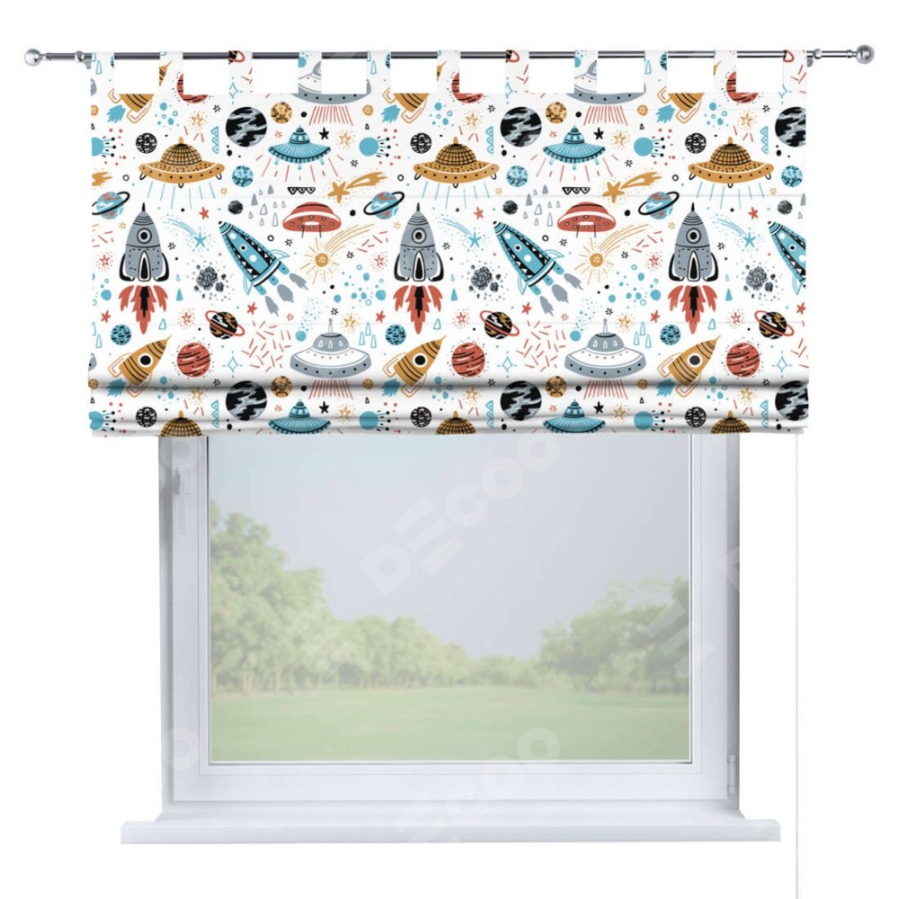 Римская штора производителя «Cortin», используется для проёма, пошита из ткани блэкаут с нанесением сублимационной печати «Космическое приключение». Данная модель пошита на петлях, комплектуется на выбор круглым карнизом и подходит для монтажа на стену. Римская штора на петлях имеет простую систему регулировки высоты, отличительным преимуществом данной модели является простой способ монтажа. Достаточно повесить ее на трубу и штора готова!