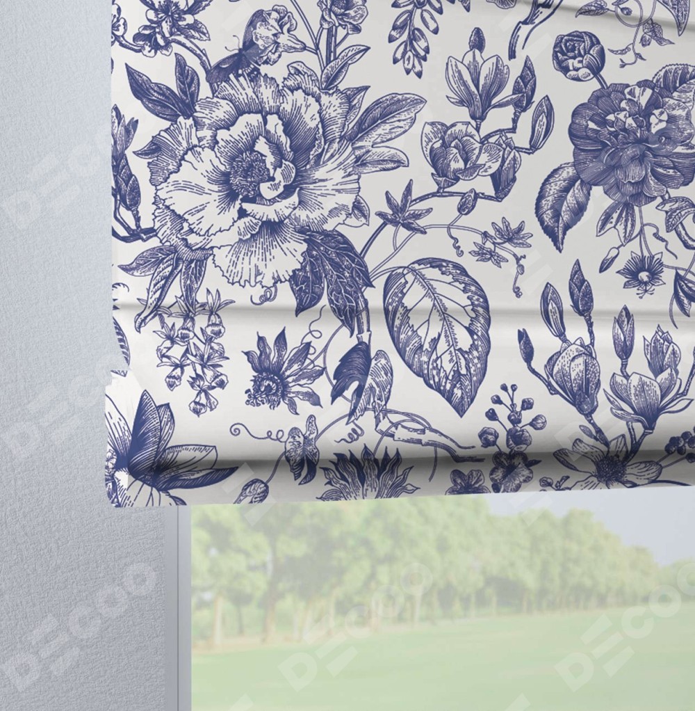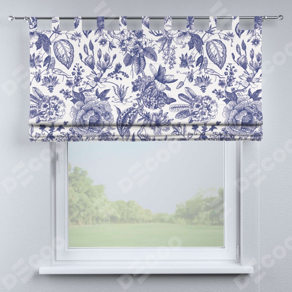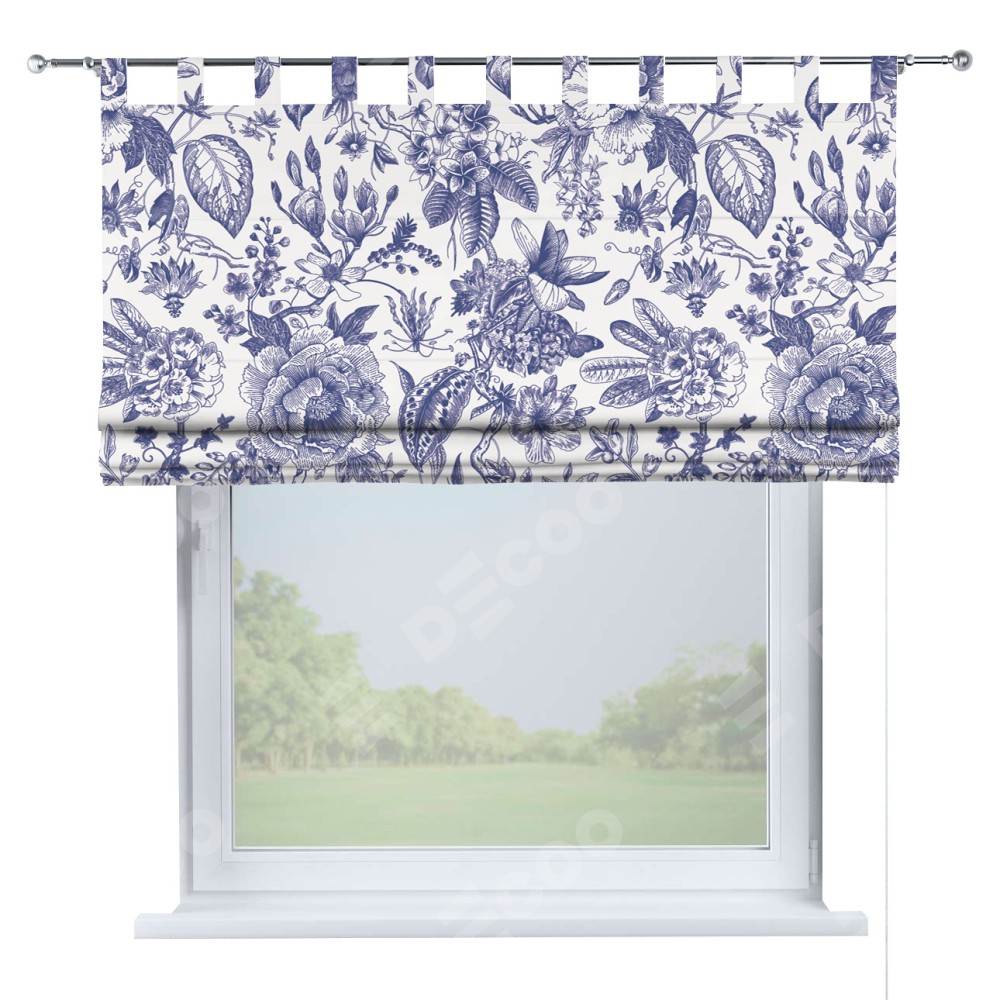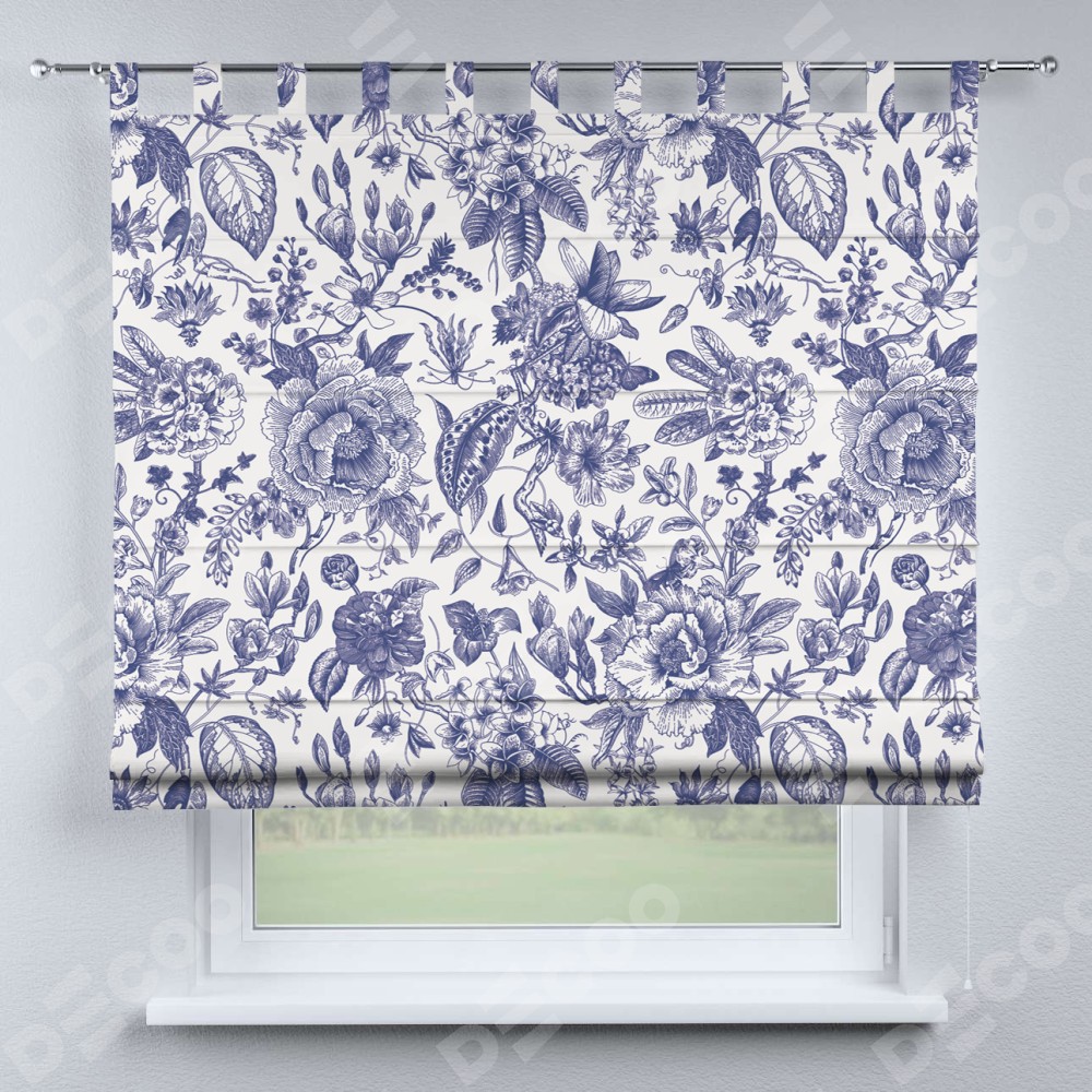Римская штора производителя «Cortin», используется для проёма, пошита из ткани блэкаут с нанесением сублимационной печати «Прованс в синем». Данная модель пошита на петлях, комплектуется на выбор круглым карнизом и подходит для монтажа на стену. Римская штора на петлях имеет простую систему регулировки высоты, отличительным преимуществом данной модели является простой способ монтажа. Достаточно повесить ее на трубу и штора готова!