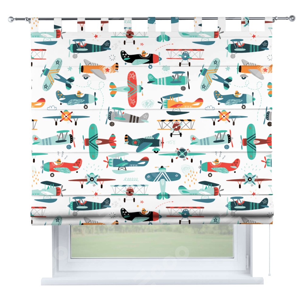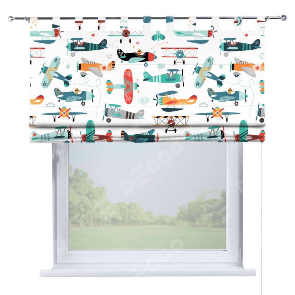 Римская штора производителя «Cortin», используется для проёма, пошита из ткани блэкаут с нанесением сублимационной печати «Самолёты и пилоты». Данная модель пошита на петлях, комплектуется на выбор круглым карнизом и подходит для монтажа на стену. Римская штора на петлях имеет простую систему регулировки высоты, отличительным преимуществом данной модели является простой способ монтажа. Достаточно повесить ее на трубу и штора готова!