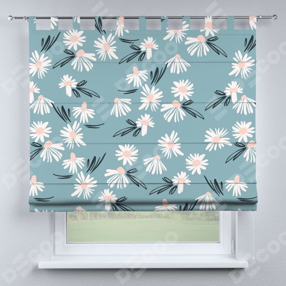 Римская штора производителя «Cortin», используется для проёма, пошита из ткани блэкаут с нанесением сублимационной печати «Чудесные ромашки». Данная модель пошита на петлях, комплектуется на выбор круглым карнизом и подходит для монтажа на стену. Римская штора на петлях имеет простую систему регулировки высоты, отличительным преимуществом данной модели является простой способ монтажа. Достаточно повесить ее на трубу и штора готова!