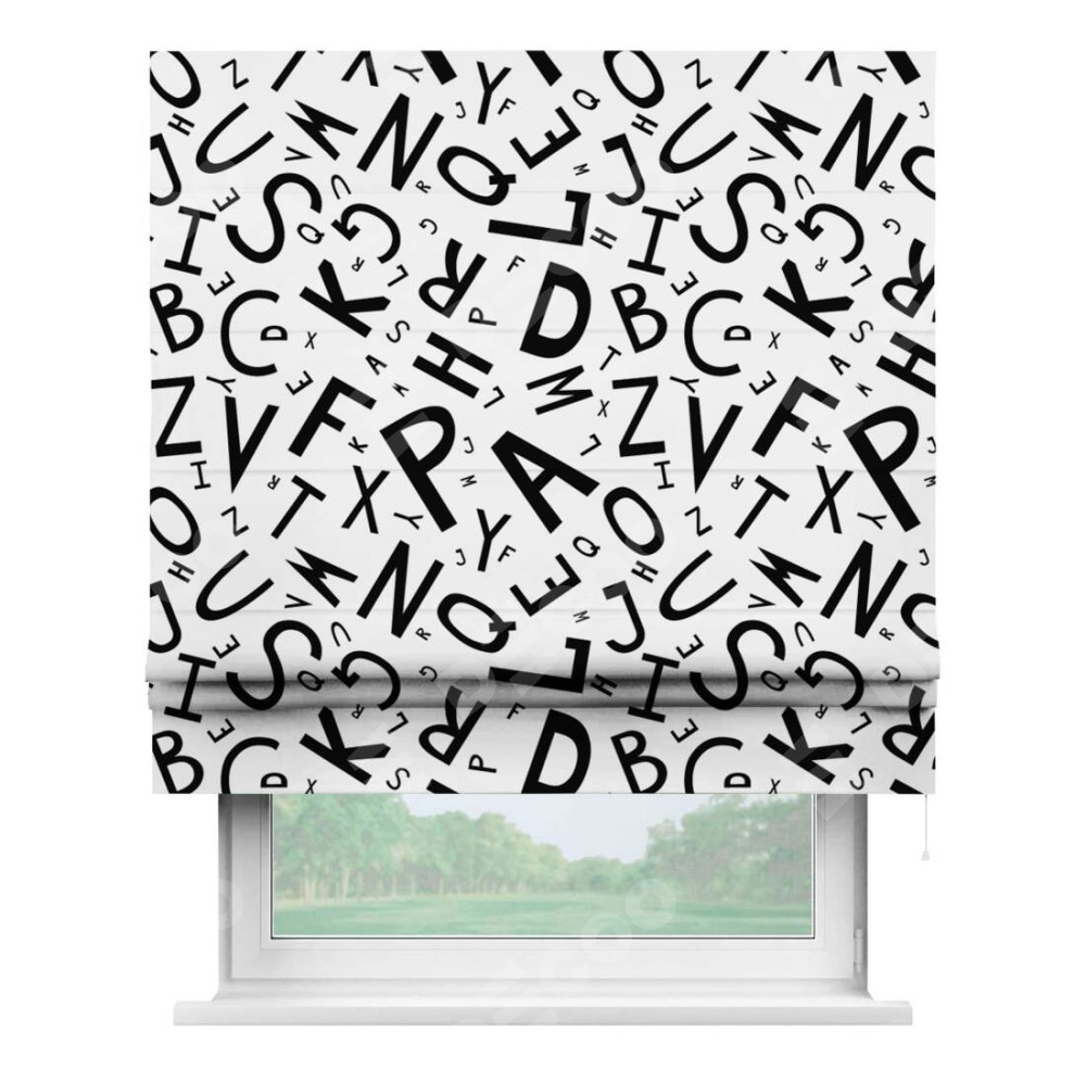 Римская штора «Кортин» для проема «Литеры на белом»