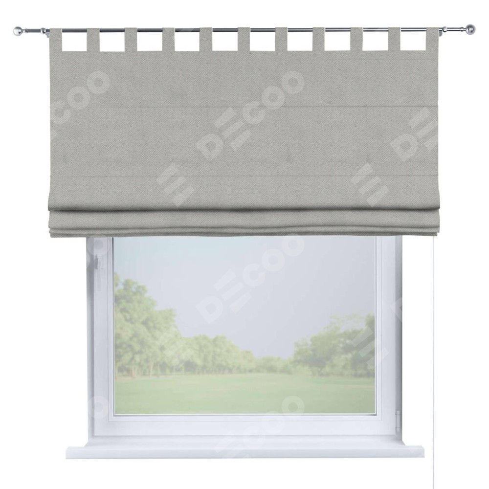 Римская штора производителя «Cortin», используется для проёма, пошита из ткани блэкаут с блеском тёмно-серый, артикул ткани 34634. Изнаночная сторона материала черного цвета, что обеспечивает необходимую светонепроницаемость. Данная модель пошита на петлях, комплектуется на выбор круглым карнизом и подходит для монтажа на стену. Римская штора на петлях имеет простую систему регулировки высоты, отличительным преимуществом данной модели является простой способ монтажа. Достаточно повесить ее на трубу и штора готова!