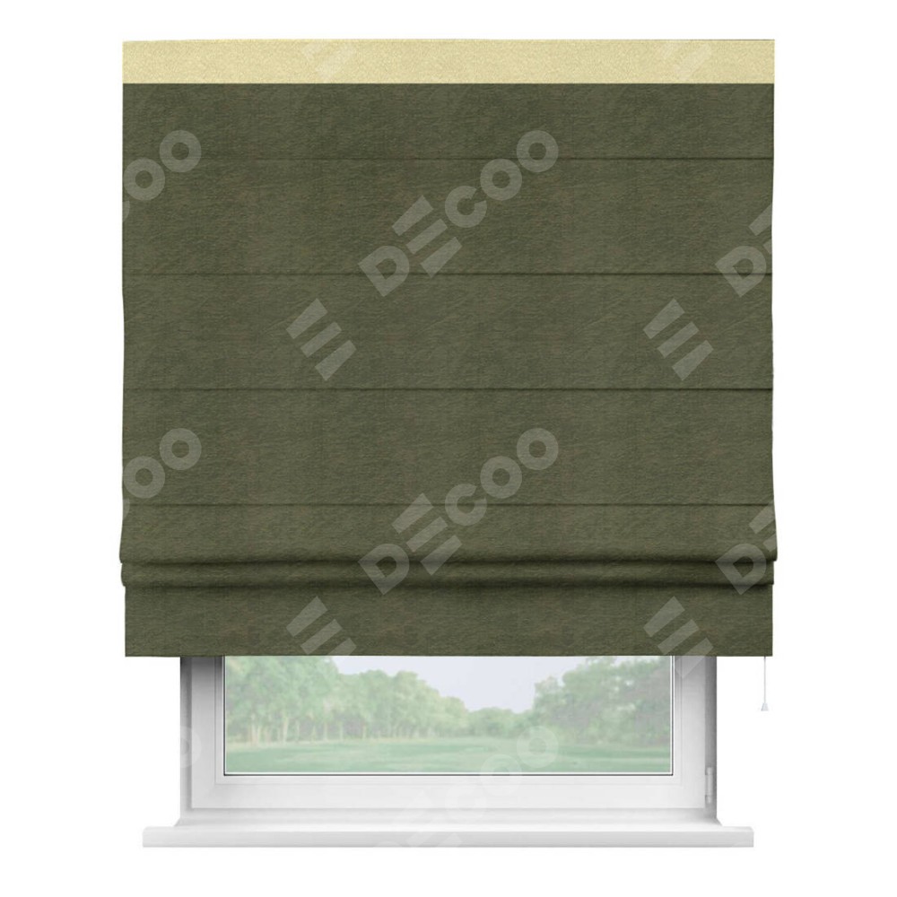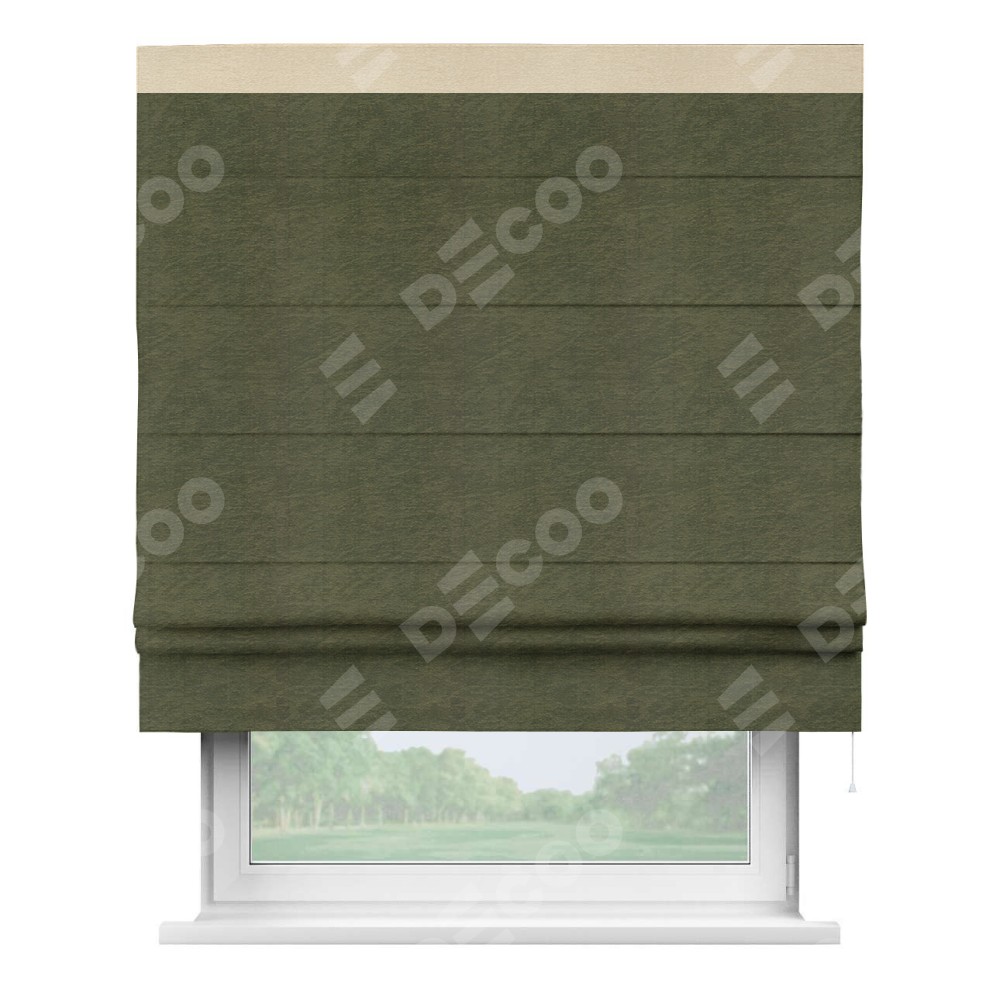 Римская штора «Кортин» с кантом Кинг, для проема ткань софт однотонный зелёный