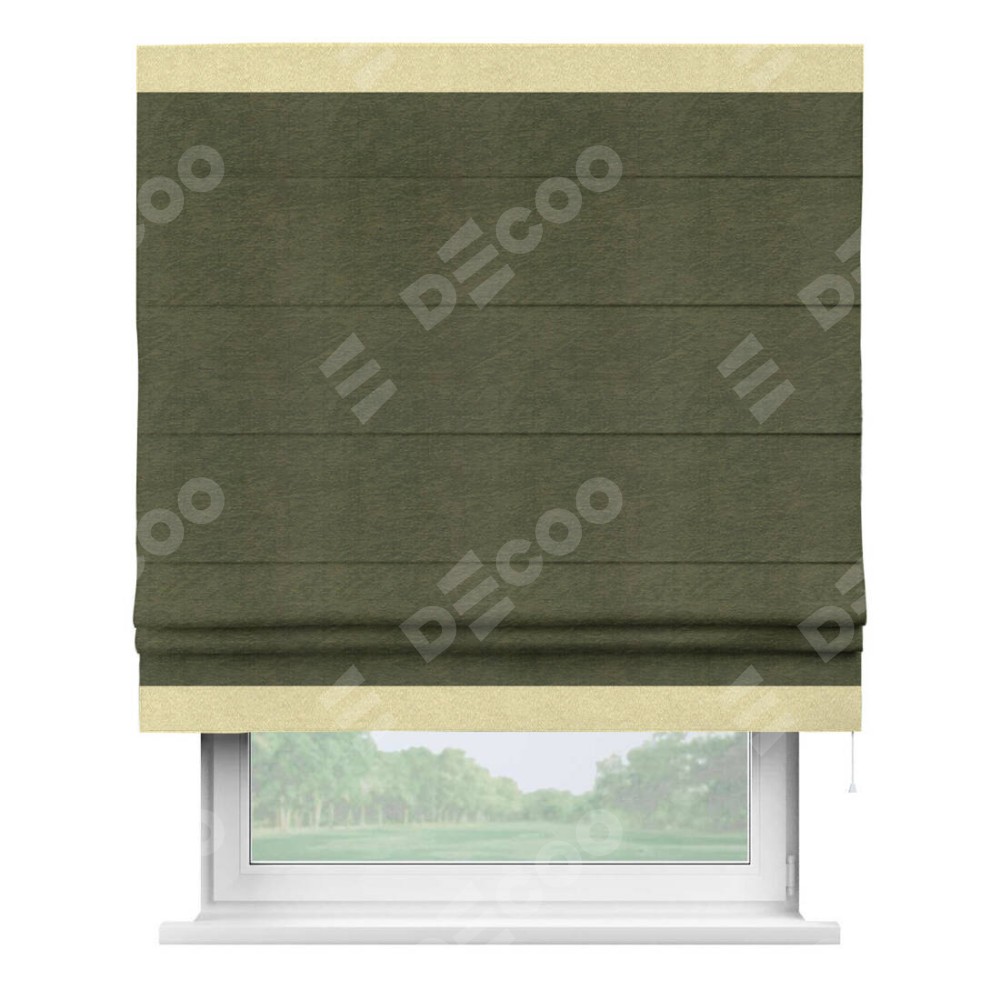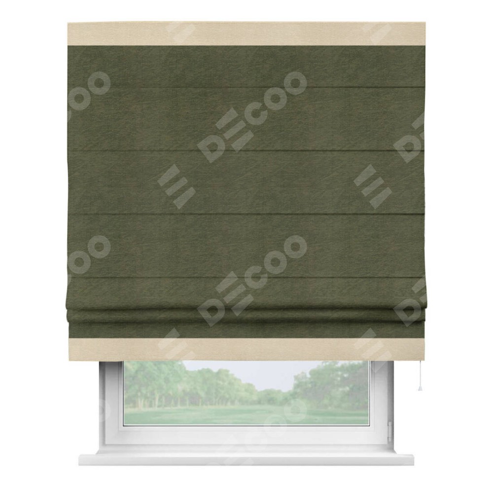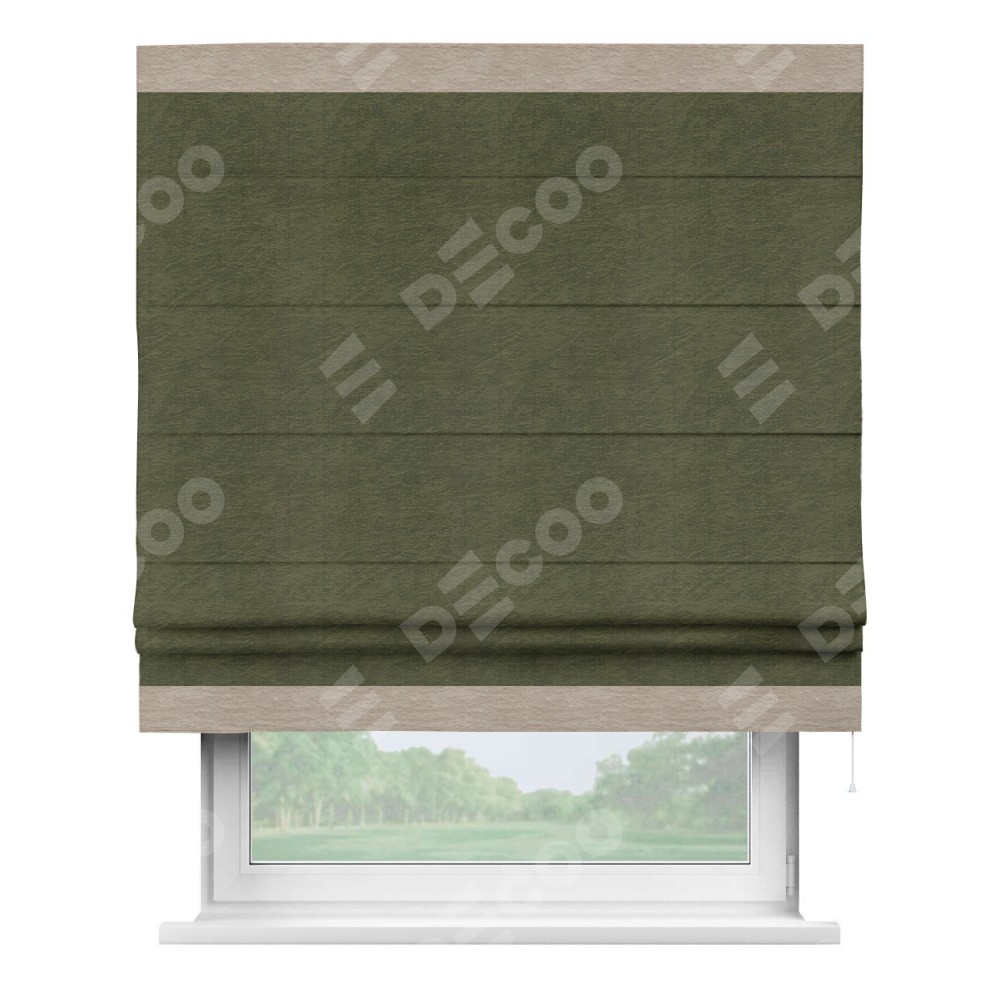 Римская штора «Кортин» с кантом Горизонт, для проема, ткань софт однотонный зелёный