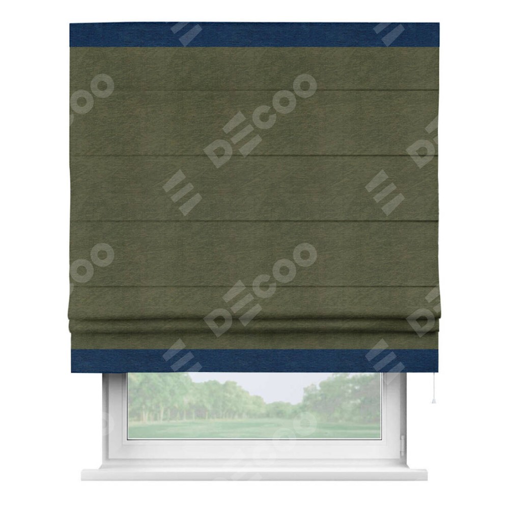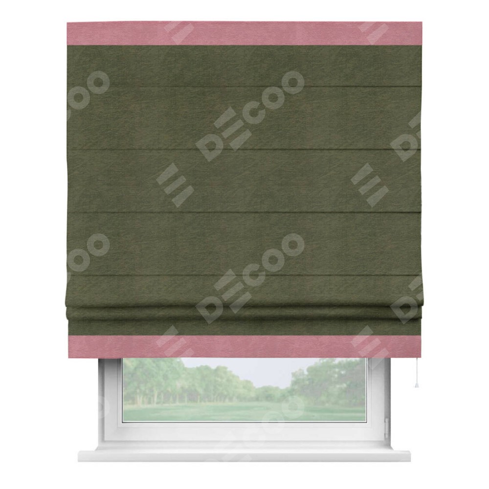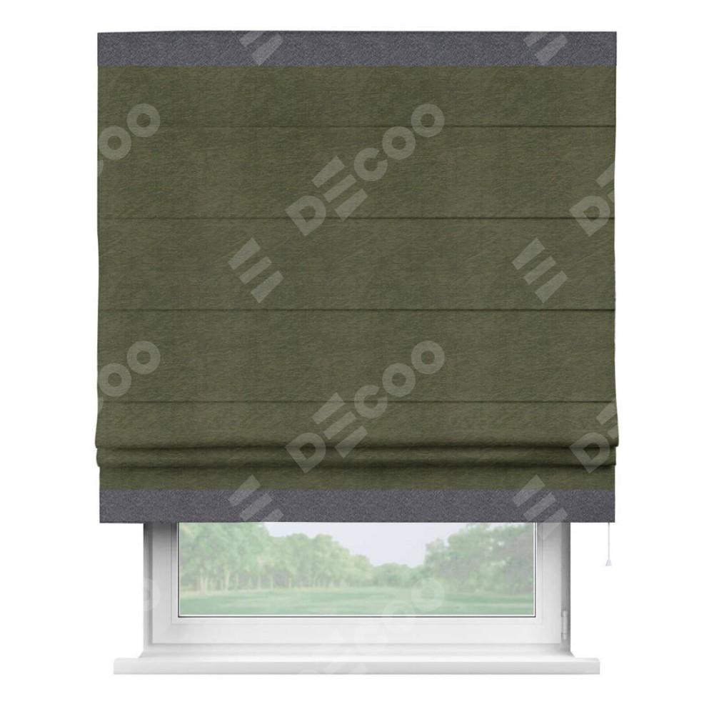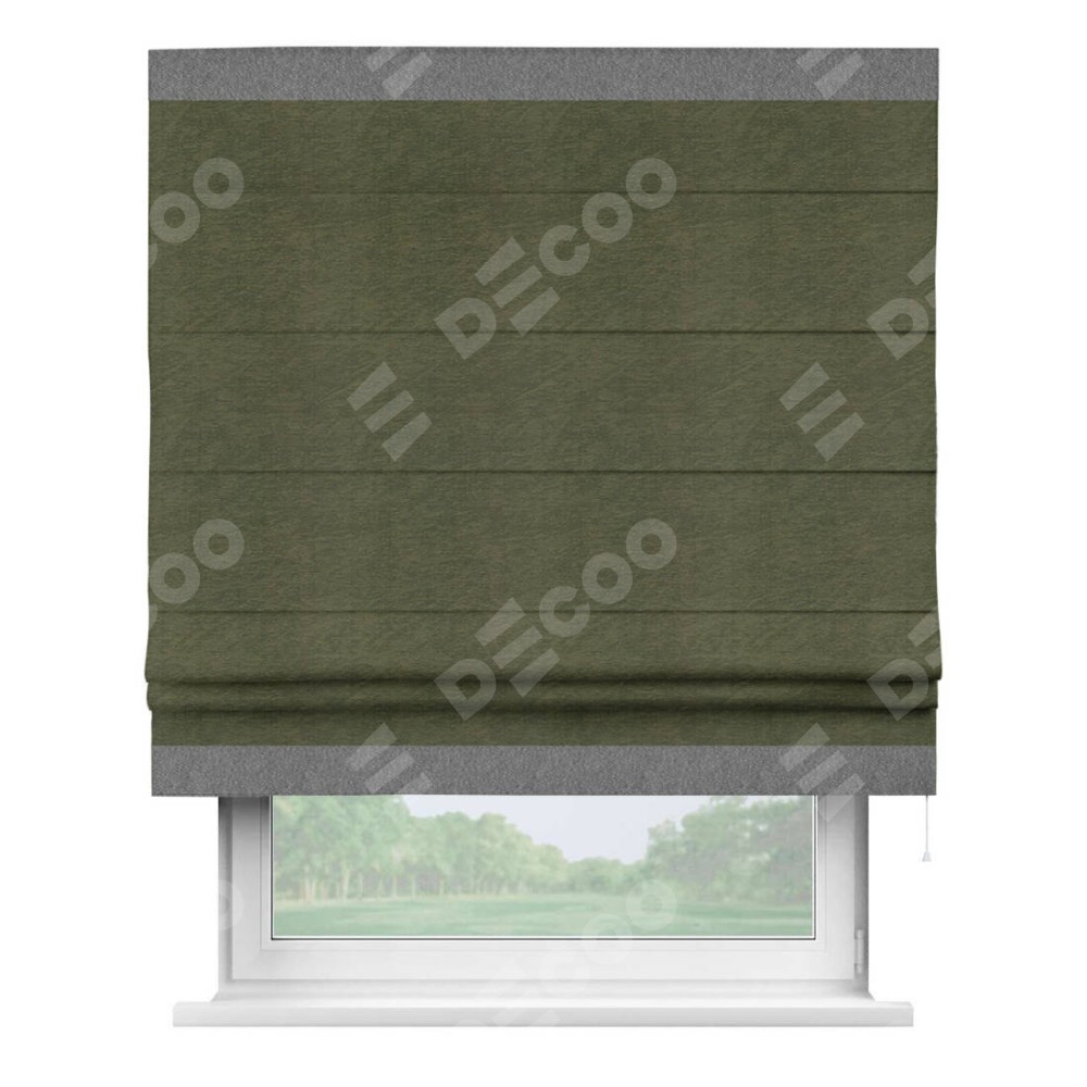 Римская штора «Кортин» с кантом Горизонт, для проема, ткань софт однотонный зелёный
