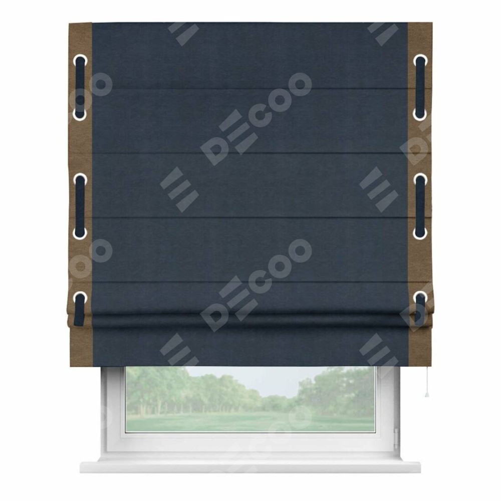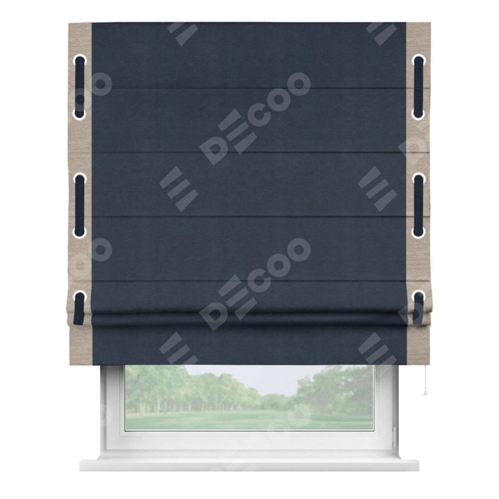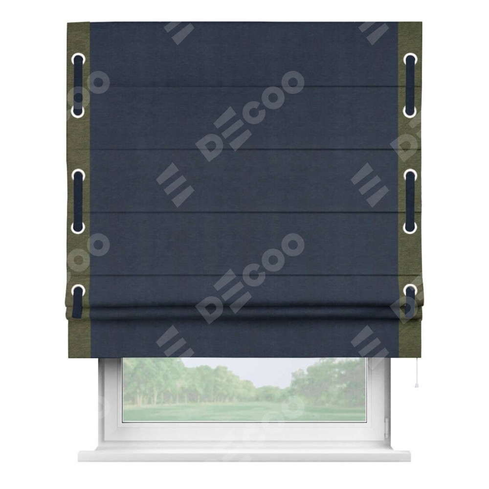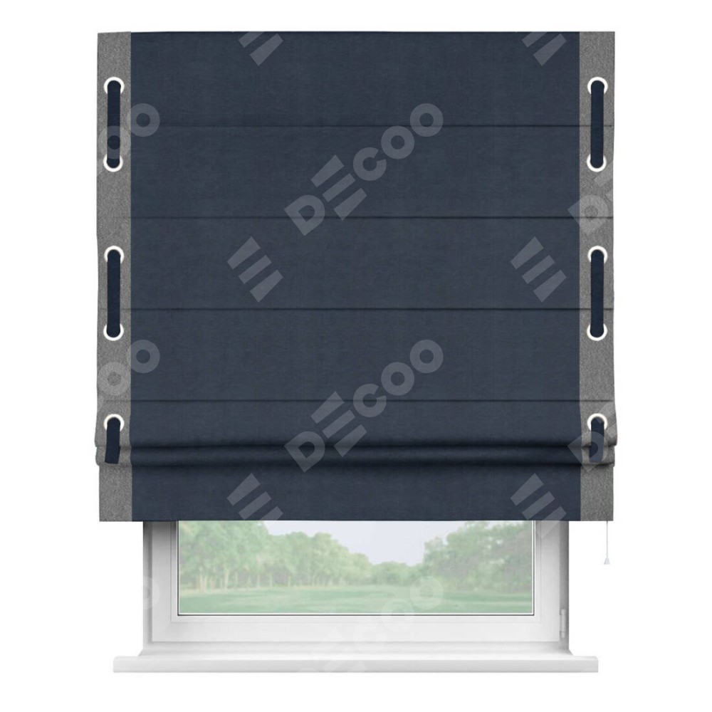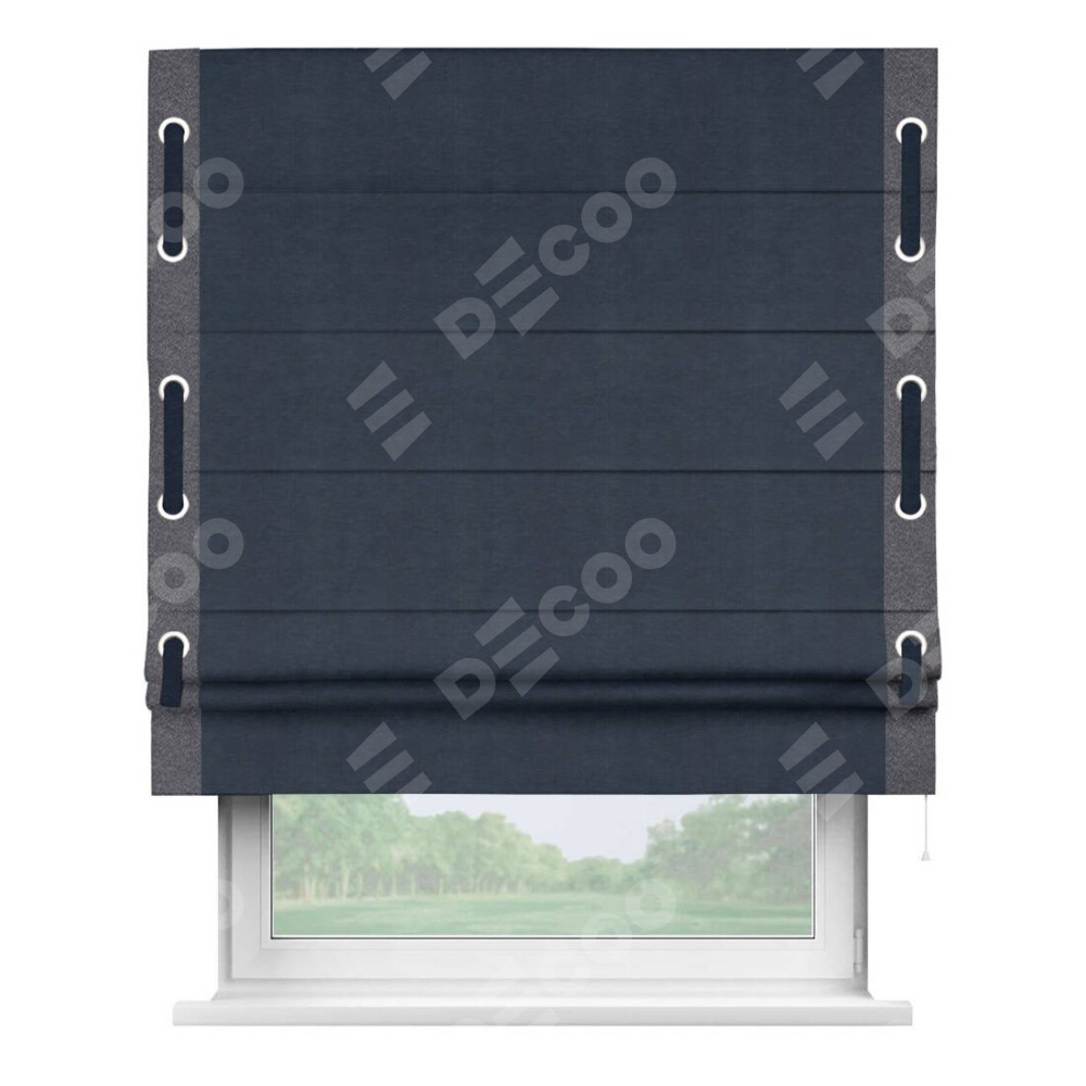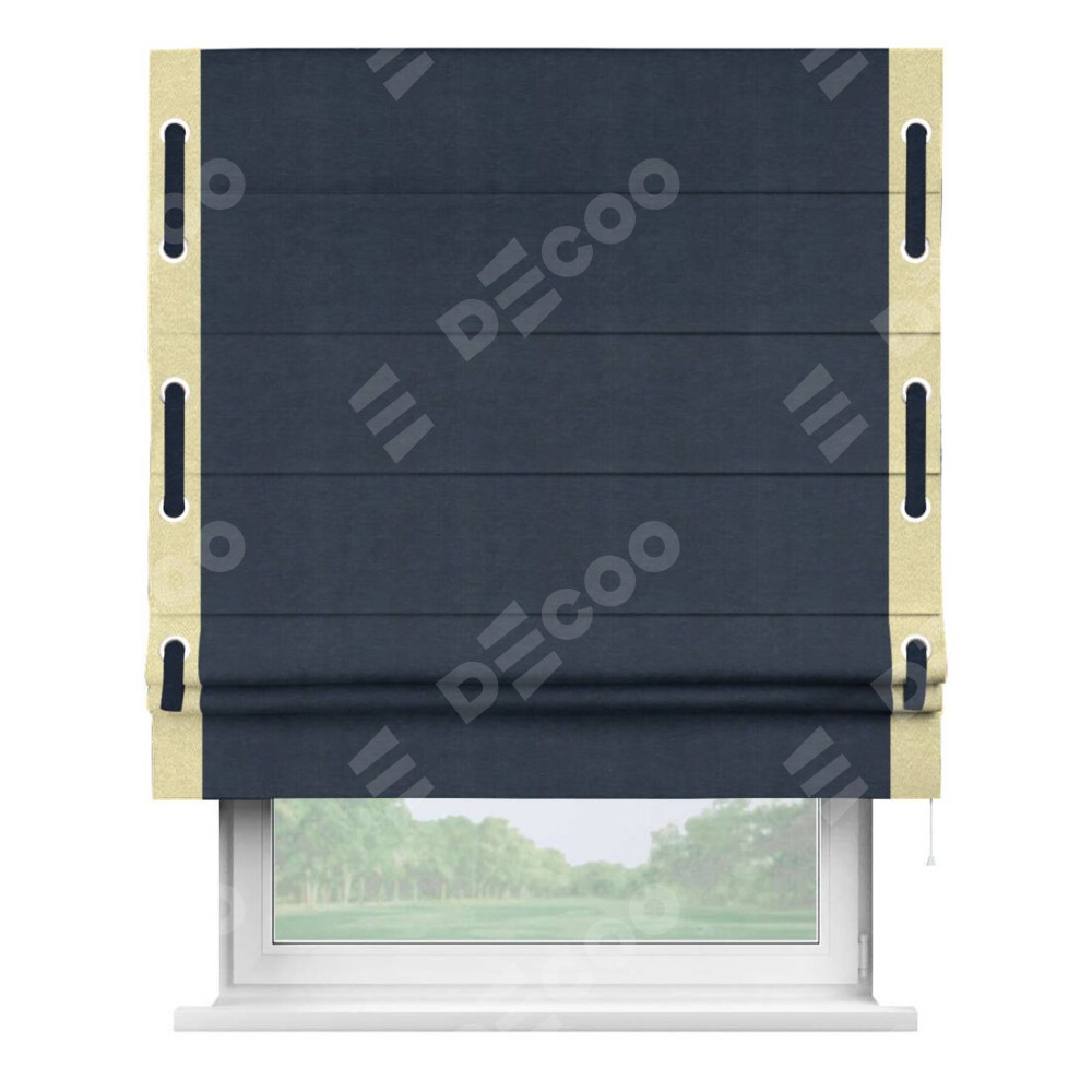 Римская штора «Кортин» с кантом Стрим Дуо (люверсы с пояском), для проема, ткань софт однотонный тёмно-синий