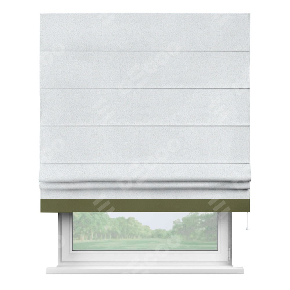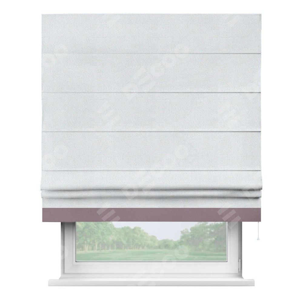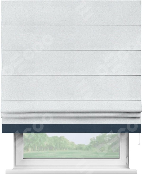 Римская штора производителя «Cortin», используется для проёма, пошита из ткани блэкаут однотонный дымчато-белый, артикул ткани 101. Отделка шторы кантом «Джестер», ткань для канта используется из блэкаута однотонного разной расцветки на выбор. Имеет универсальный механизм и подходит для монтажа: на потолок, на стену и в нишу.