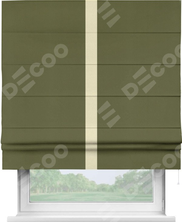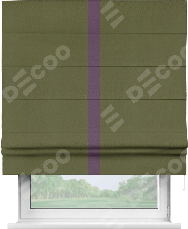 Римская штора «Кортин» с кантом Хайвэй, для проема, ткань блэкаут однотонный зелёный