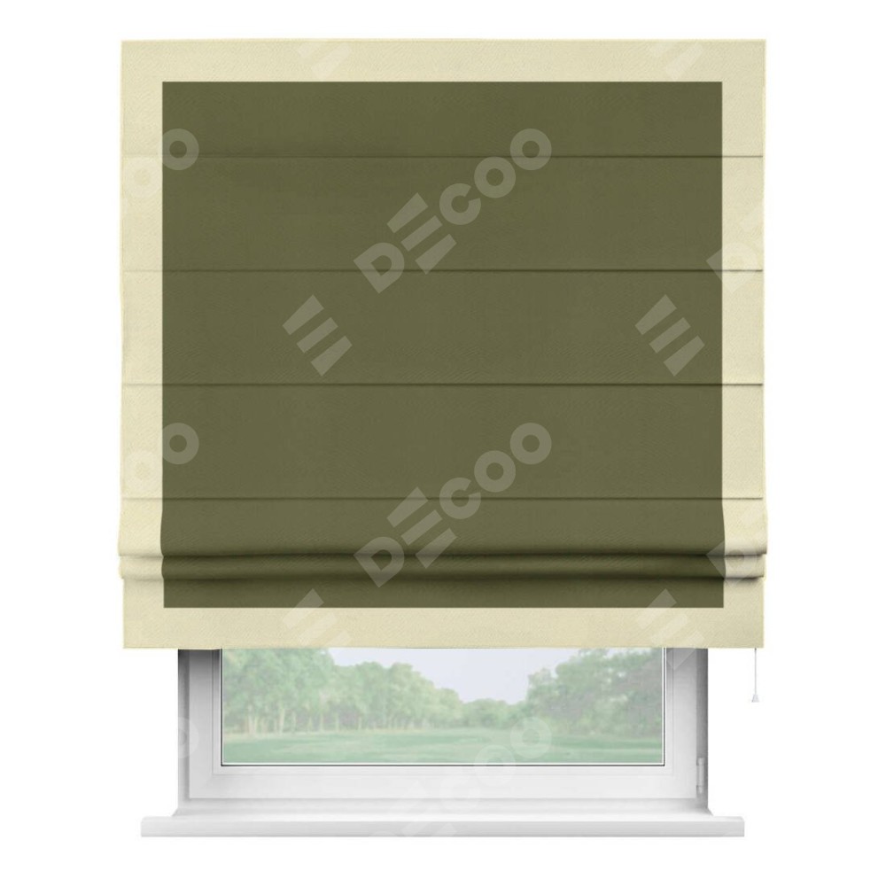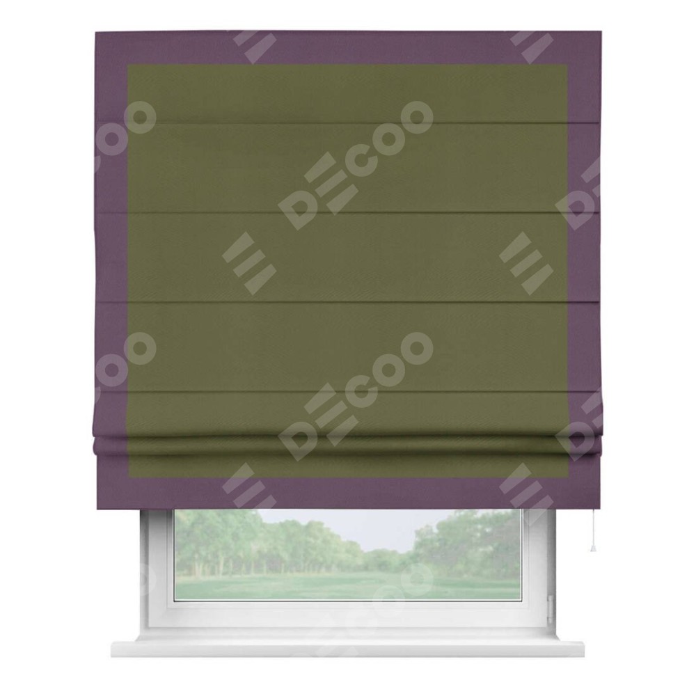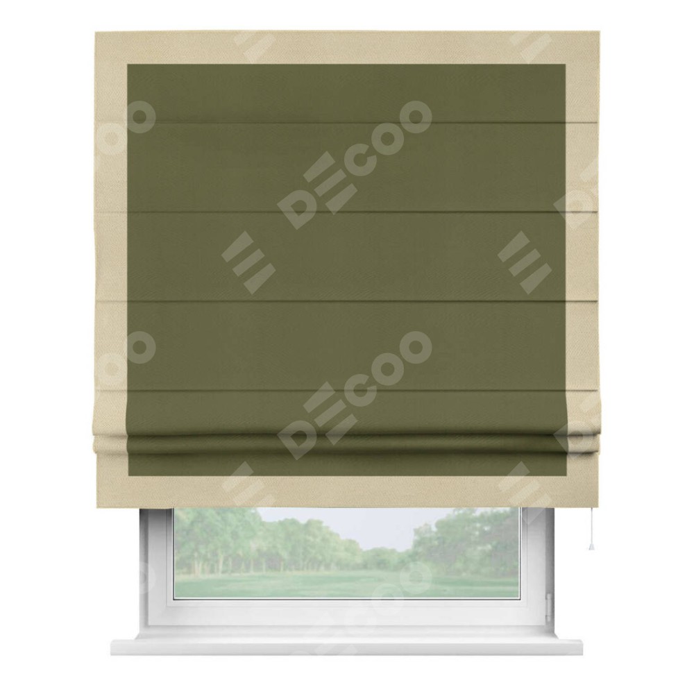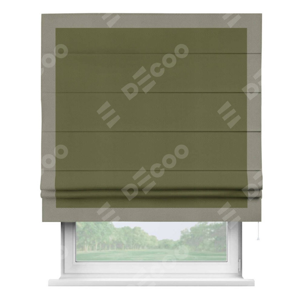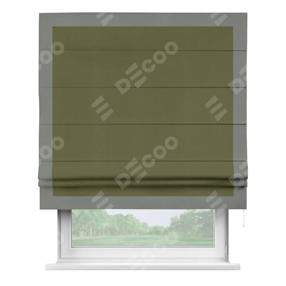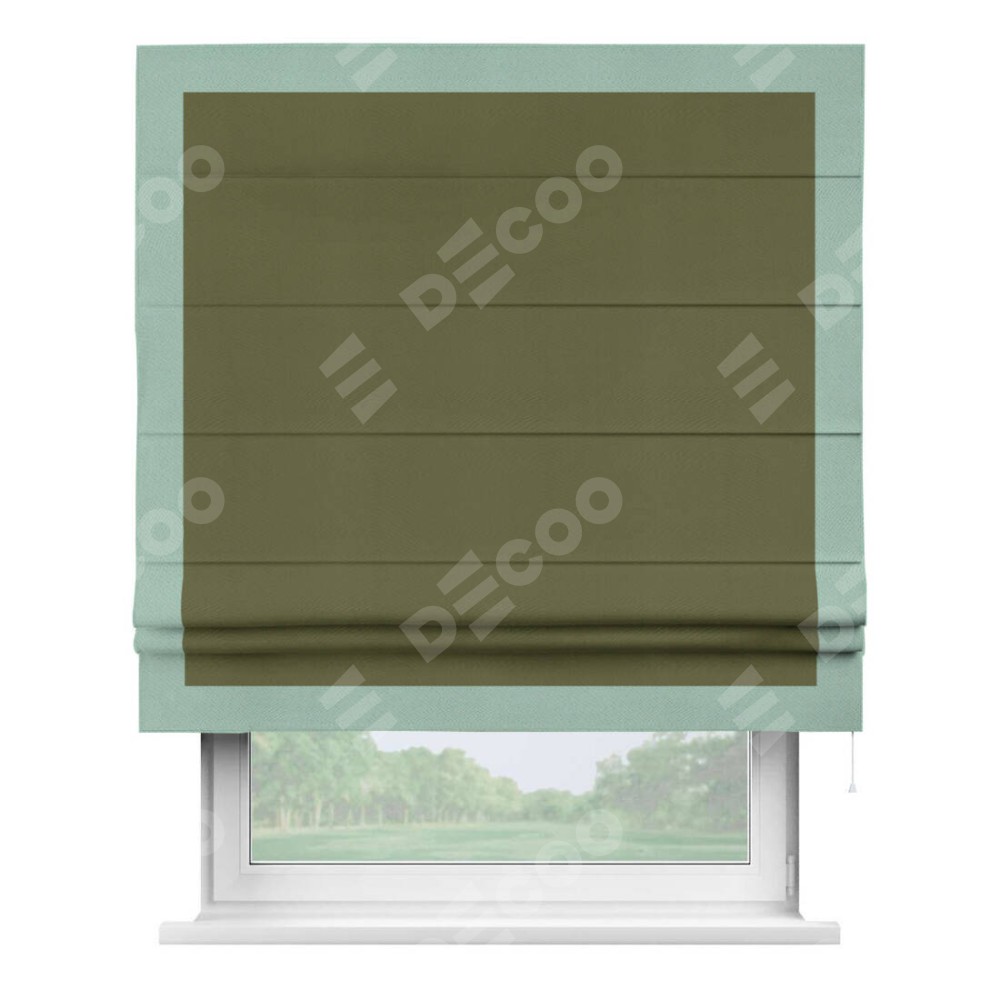 Римская штора «Кортин» с кантом Чесс, для проема, ткань блэкаут однотонный зелёный