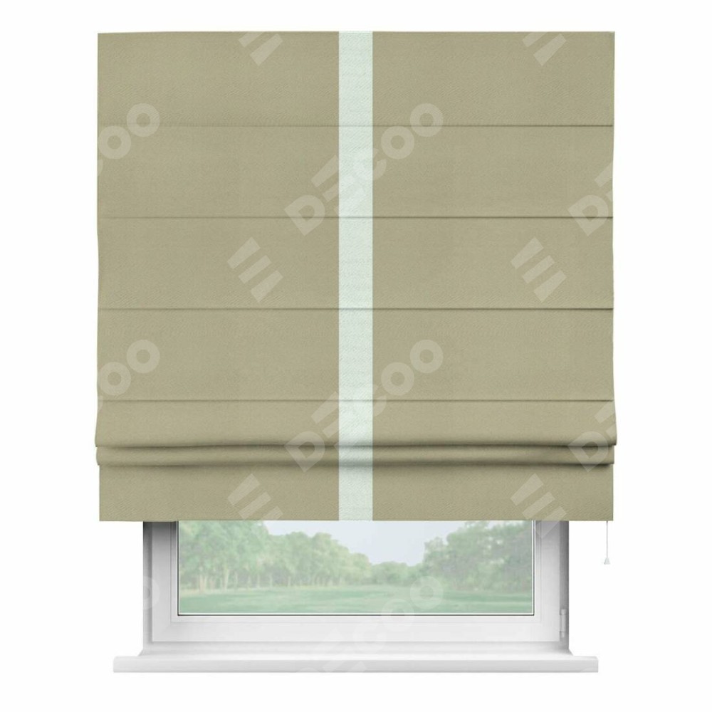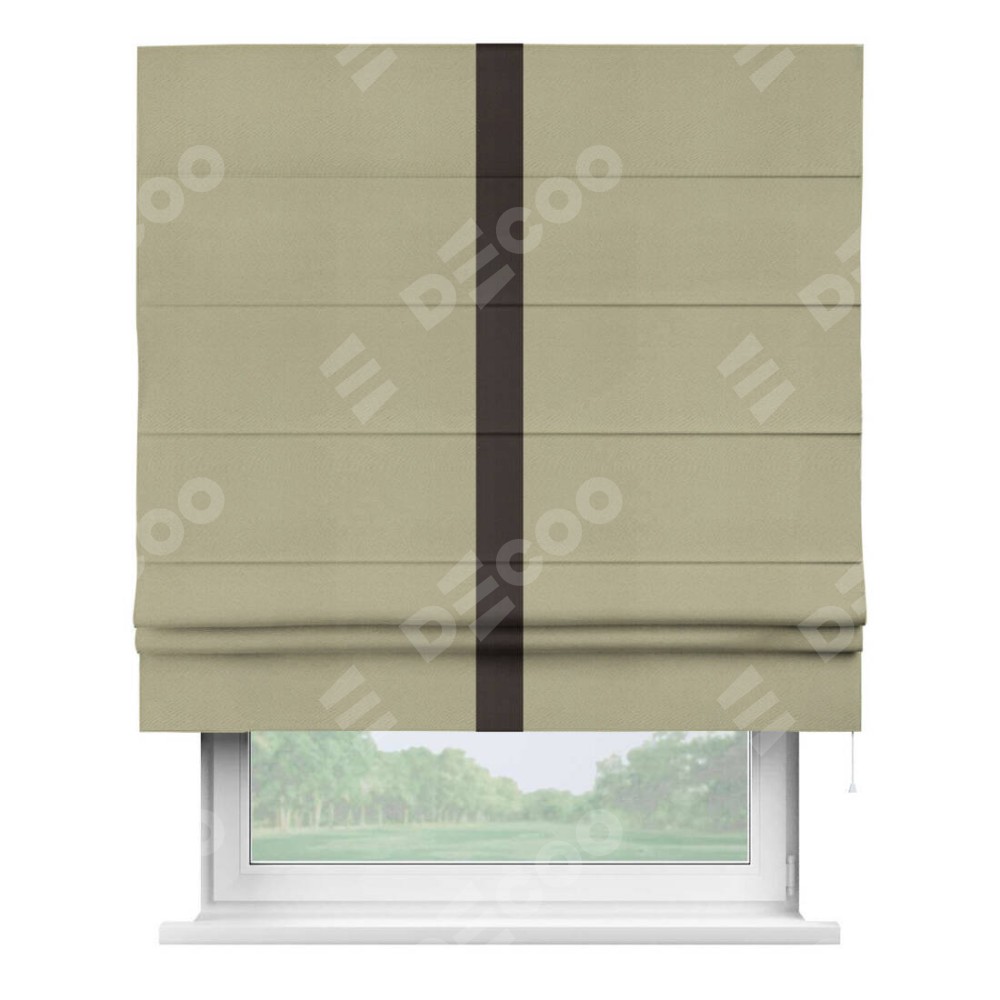 Римская штора производителя «Cortin», используется для проёма, пошита из ткани блэкаут однотонный милано капучино, артикул ткани 06. Отделка шторы кантом «Хайвей», ткань для канта используется из блэкаута однотонного разной расцветки на выбор. Имеет универсальный механизм и подходит для монтажа: на потолок, на стену и в нишу.