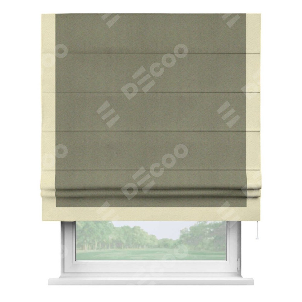 Римская штора «Кортин» с кантом Виктория, для проема, ткань блэкаут однотонный серо-коричневый