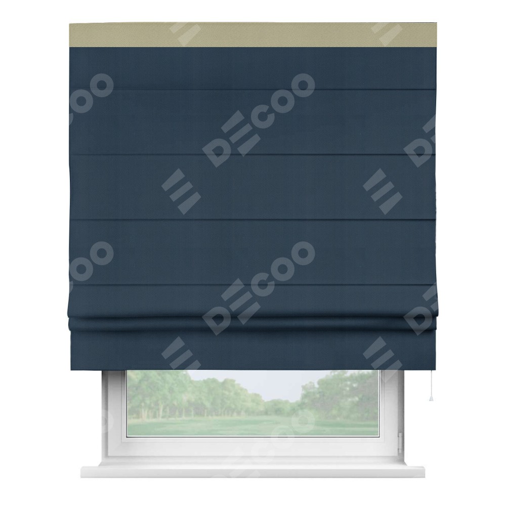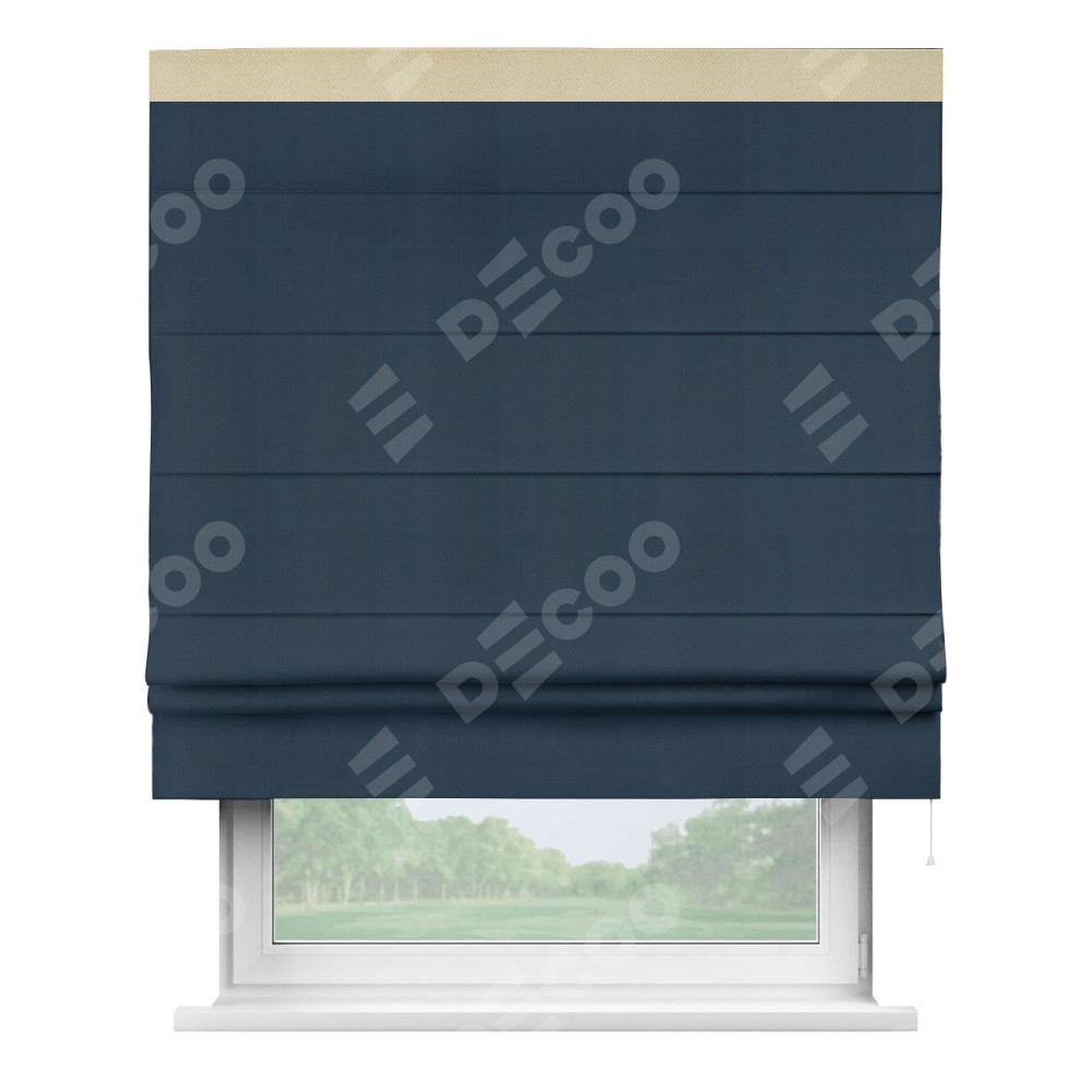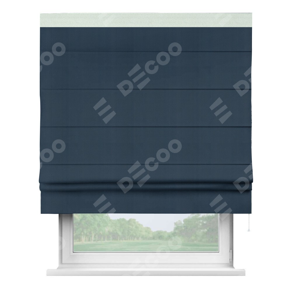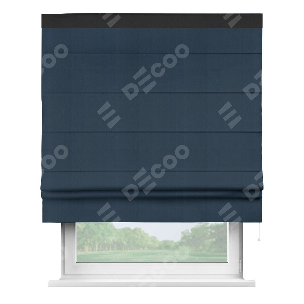 Римская штора производителя «Cortin», используется для проёма, пошита из ткани блэкаут однотонный синий, артикул ткани 29327. Отделка шторы кантом «Кинг», ткань для канта используется из блэкаута однотонного разной расцветки на выбор. Имеет универсальный механизм и подходит для монтажа: на потолок, на стену и в нишу.