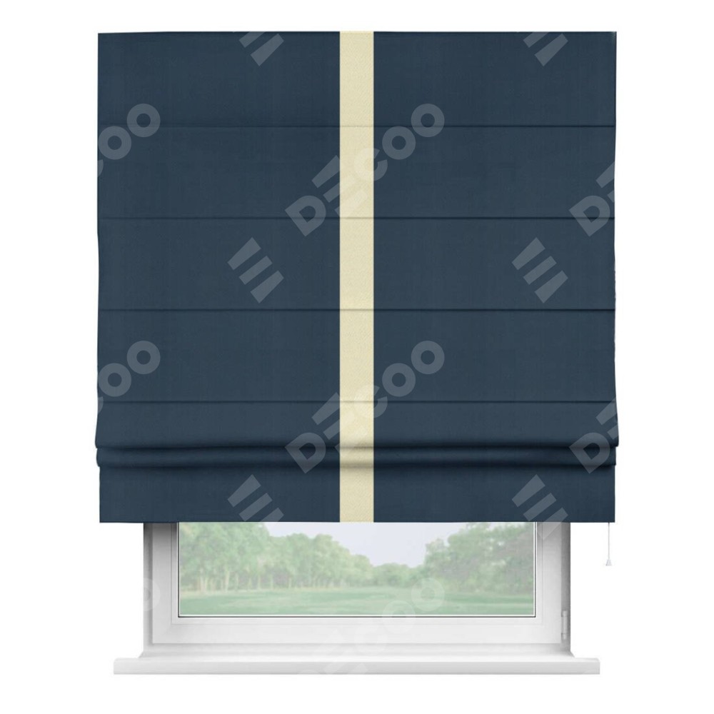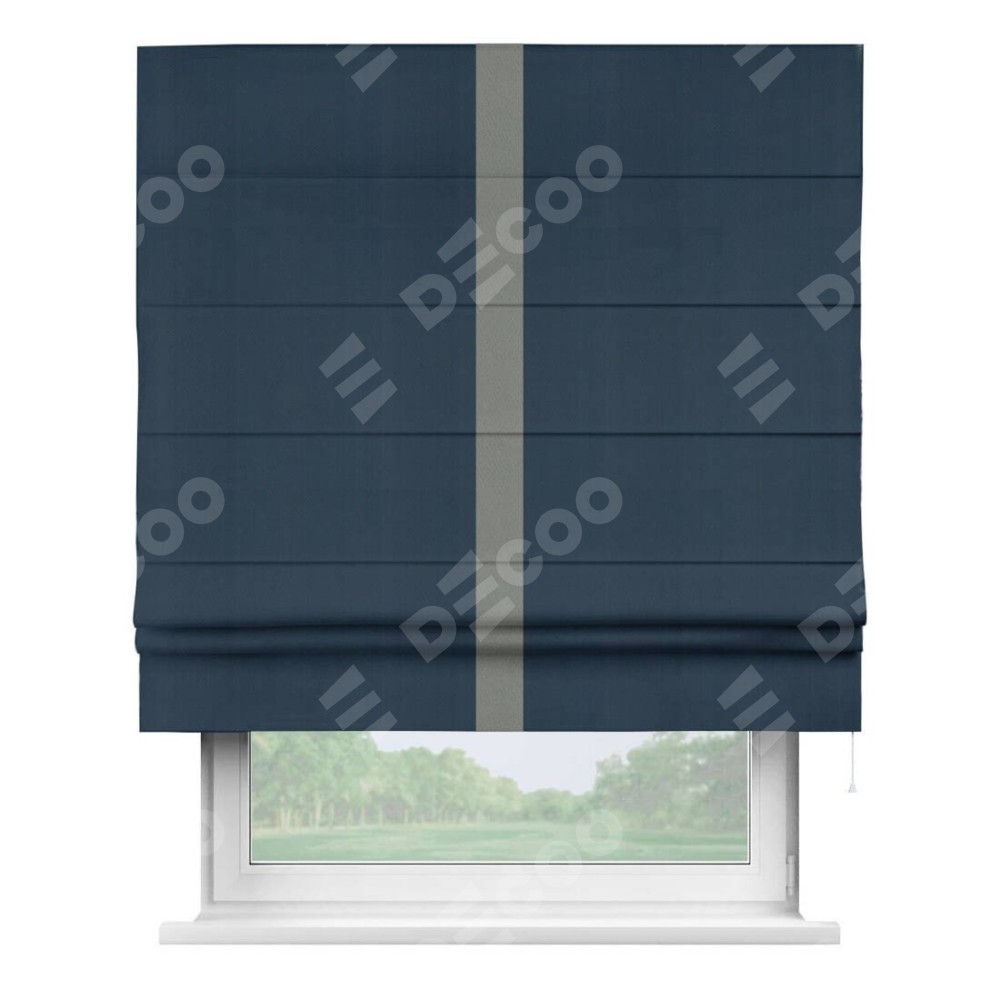 Римская штора «Кортин» с кантом Хайвэй, для проема, ткань блэкаут однотонный синий