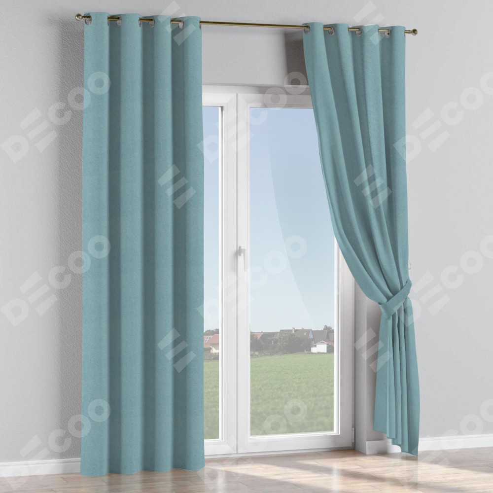 Комплект прямых штор, от производителя «Cortin», пошиты из ткани блэкаут с блеском синий, артикул ткани 34625. Обратная сторона основного материала черного цвета, что обеспечивает необходимую светонепроницаемость. Данная модель пошита на люверсах, комплектуется на выбор круглым карнизом и подходит для монтажа на стену или потолок. Прямые шторы на люверсах шьются по стандарту с коэффициентом 1/2 (на 100 см. ширины проёма 200 см. ширины ткани), отличительным преимуществом данной модели является простой способ монтажа. Достаточно повесить ее на трубу и штора готова!
