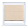Римская штора кассетного типа, производителя «Cortin», устанавливается только на пластиковые окна и прилегает к стеклопакету, пошита из ткани из ткани блэкаут тиснение с блеском бежевый, артикул 34627. Изнаночная сторона материала черного цвета, что обеспечивает необходимую светонепроницаемость.