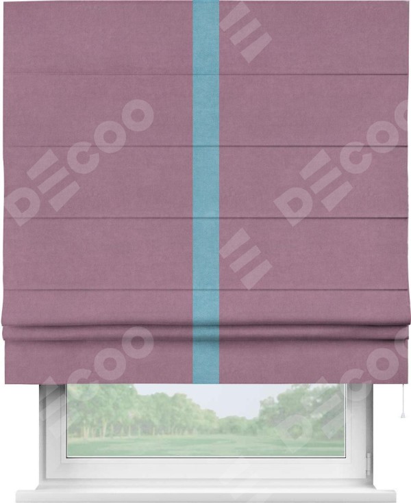 Римская штора производителя «Cortin», используется для проёма, пошита из ткани вельвет лиловый, артикул ткани 17752. Отделка шторы кантом «Хайвей», ткань для канта используется из вельвета разной расцветки на выбор. Имеет универсальный механизм и подходит для монтажа: на потолок, на стену и в нишу.